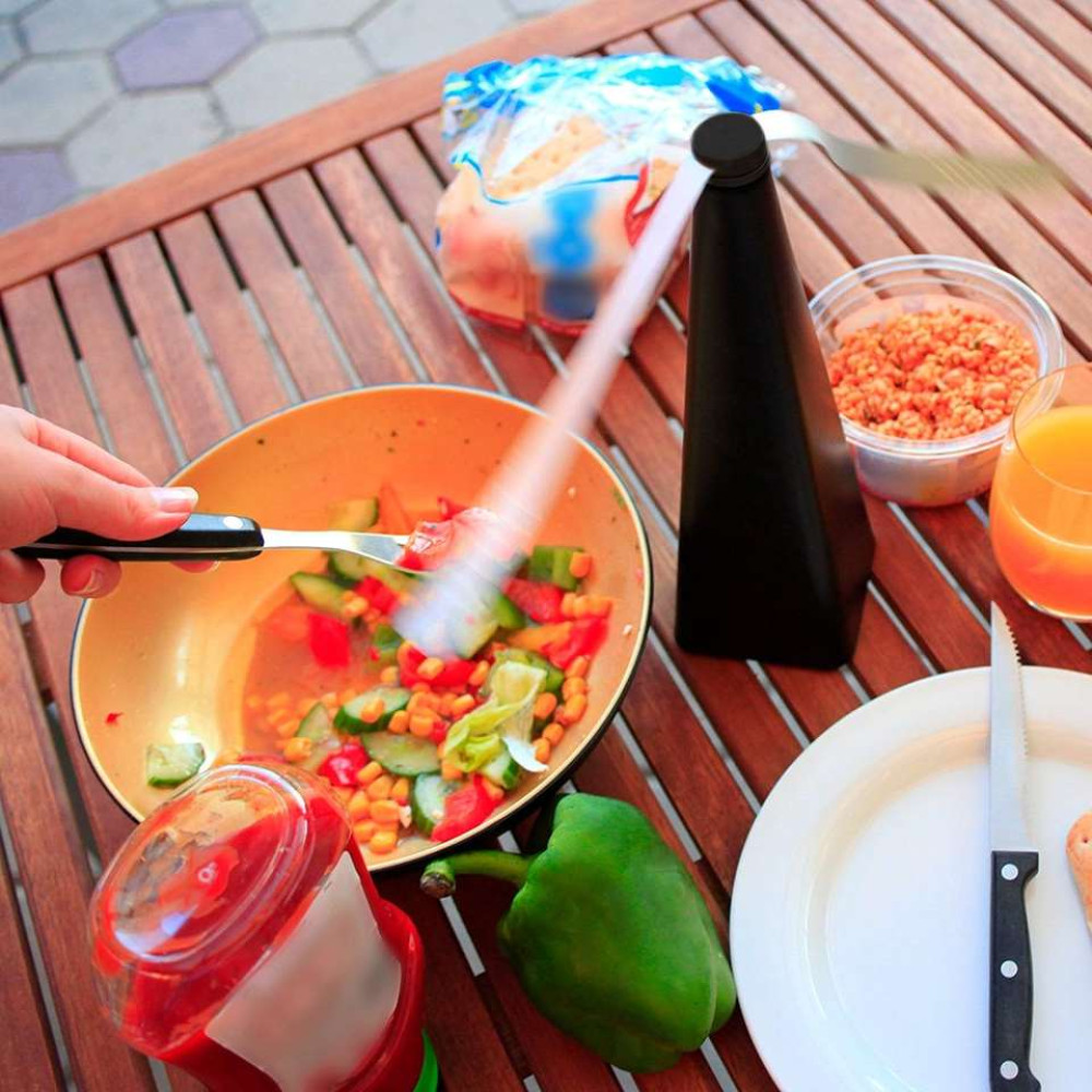 Нарешті ви можете насолоджуватися розмовою на пікніку, не дозволяючи мухам проходити весь час. Це легкий вентилятор без запаху, який Ви розміщуєте поверх столу для пікніка або на відкритому повітрі, щоб мухи не могли пірнати бомбардуючи вашу їжу.