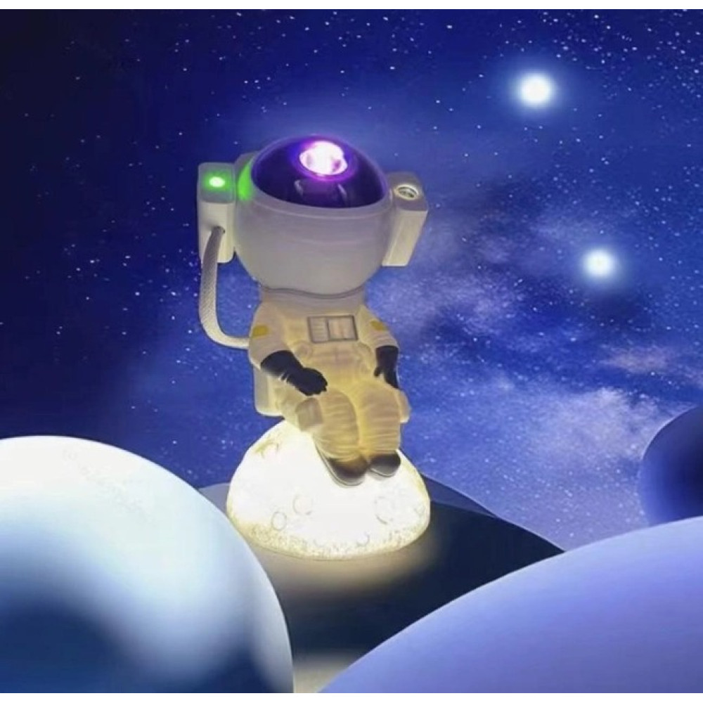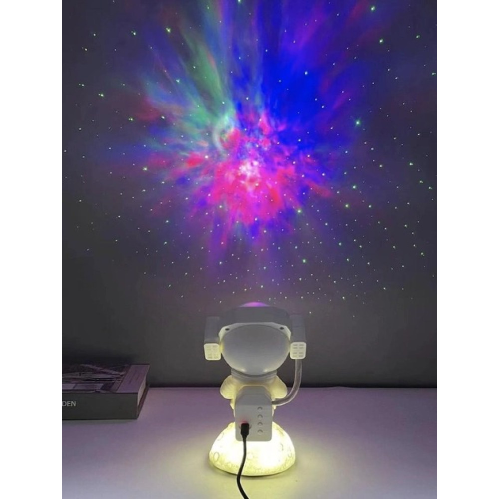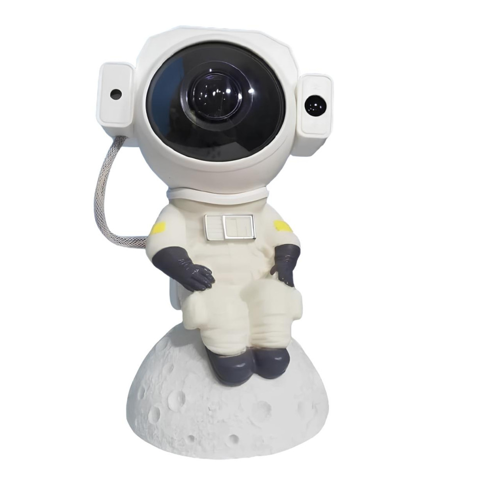 Нічник проектор зоряного неба Космонавт, він робот. Даний проектор зоряного неба має вбудовану колонку з функцією bluetooth. Світильник астронавт з місяцем, на якому він сидить, а також може проектувати місяць. Безліч налаштувань світіння здивують і дітей та дорослих.