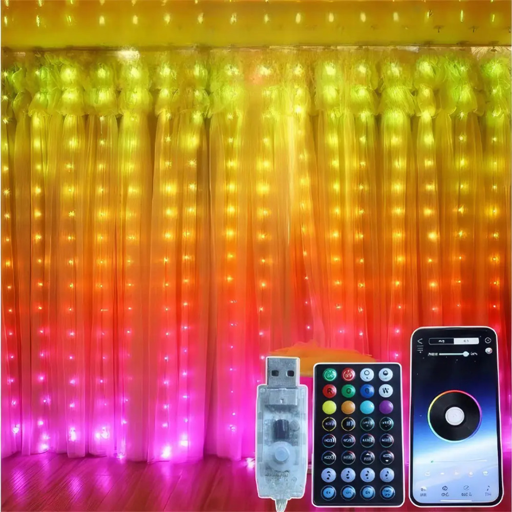 Світлодіодна гірлянда-штора SFK-06 — це ефектна світлова завіса розміром 3×3 метри з 200 LED-лампами, яка додасть святкового настрою та затишку в будь-який інтер'єр. Керується через мобільний додаток через Bluetooth або пульт дистанційного керування, підключається через USB. Ідеально підходить для прикраси окон, спалень, весільних залів та створення новорічної атмосфери. Завдяки розумній системі RGB-підсвічування можна налаштовувати різні кольорові комбінації та ефекти, перетворюючи простір на казкову картину.