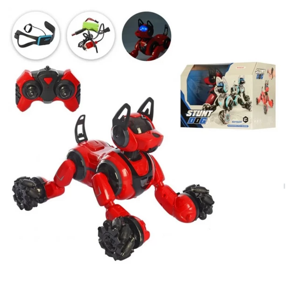 Інтерактивна робот-собака багатофункціональна іграшка на радіокеруванні від браслета та пульта зі звуком та світлом Syrcar Stunt Dog 666-800A Червоний