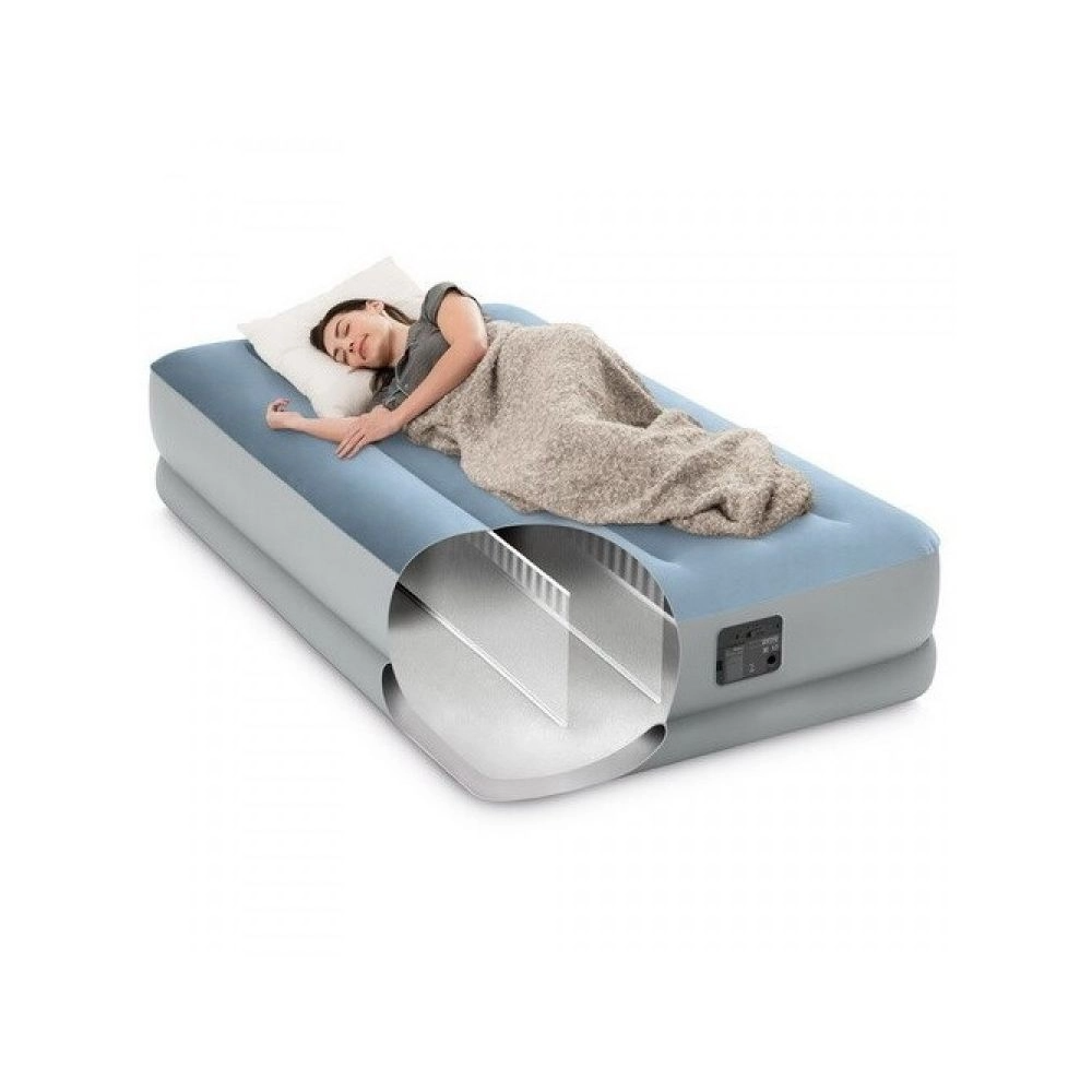 - Надувне ліжко серії виготовлено за технологією Coil Beam. Внутрішні перегородки ліжка під вагою тіла не деформуються і постійно залишаються стійкими.