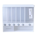 - Диспенсер оснащений системою кнопок, для заповнення лотка достатньо натиснути кнопку під відповідним відсіком та утримувати її пальцем до заповнення лотка;