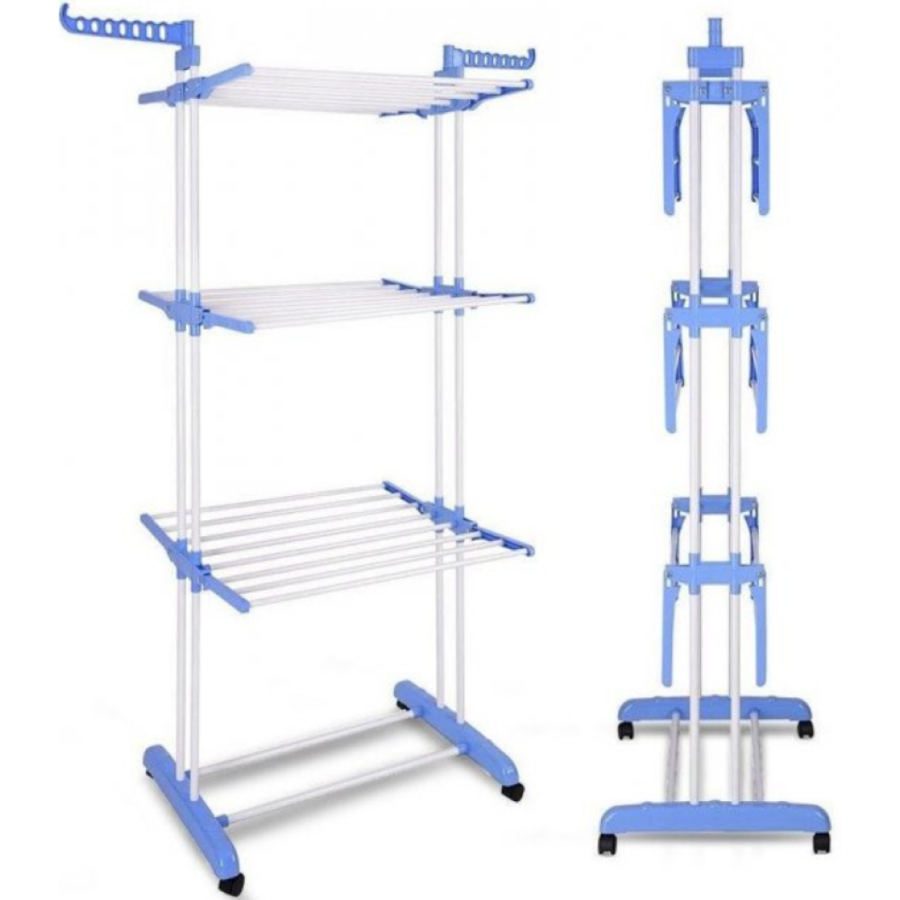 Вішалка - сушарка для білизни складана підлогова, острівна, завдяки вбудованим колесам легко переміщати в будь-яку точку приміщення без необхідності розбору. Металева труба з діаметром 1,2см, з'єднувачі та наконечники пластмасові. Вішалка складається з трьох незалежних секція, таким чином ви з легкістю зможете розмістити різний одяг та взуття в одному місці. Металеві горизонтальні перекладини є місцем для сушіння білизни, але ви завжди зможете повісити повсякденний одяг за допомогою звичайних вішалок. Портативна вішалка-сушарка The Diamond Quality не займає багато місця, швидко розбирається за потреби та зроблена з міцних безпечних матеріалів.