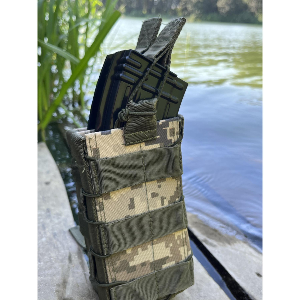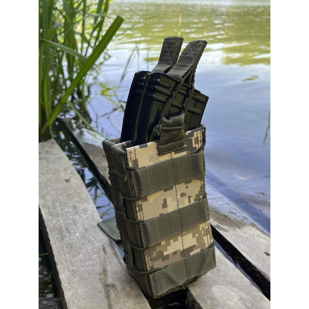 Підсумок одинарний для магазину АК закритого типу виготовлений з якісних матеріалів, має стандартне уніфіковане кріплення MOLLE і дозволяє використовувати з будь-якими серійними розвантаженнями, тактичними поясами та бронежилетами. Підсумок надійно закривається клапаном, який фіксується на велкро (липучку) і додатково фіксується фастексом (засувка). Один підсумок призначений під 2 магазини АК.