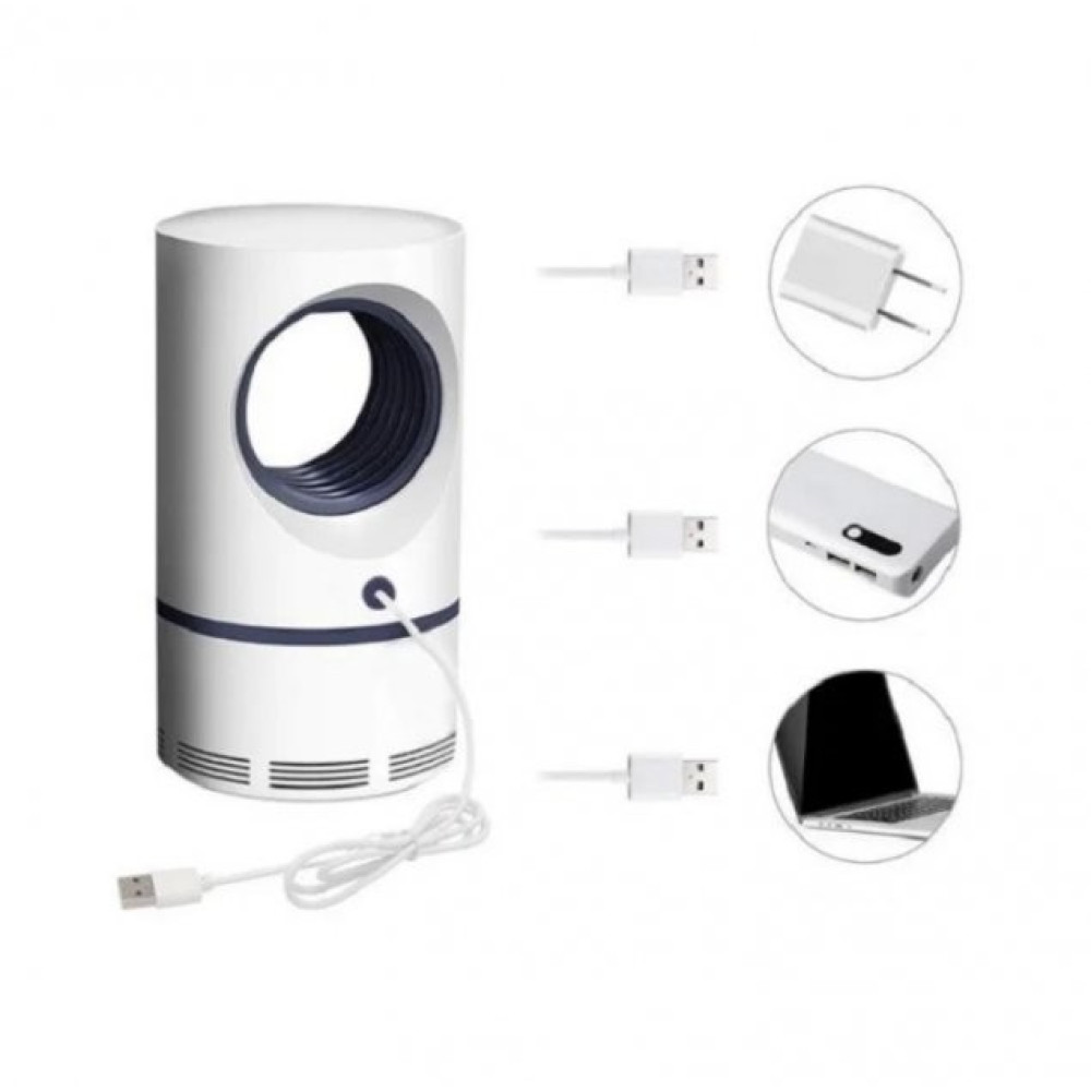 Знищувач пастка для комарів та комах Mosquito Killer здатний ефективно позбавити вас від настирливих комарів як удома, так і на відкритому повітрі. Оснащений спеціальною світлодіодною лампою з 6 лампочками, які випромінюють ультрафіолетове світло з довжиною хвилі 365 нм, яке приваблює комарів та інших комах.