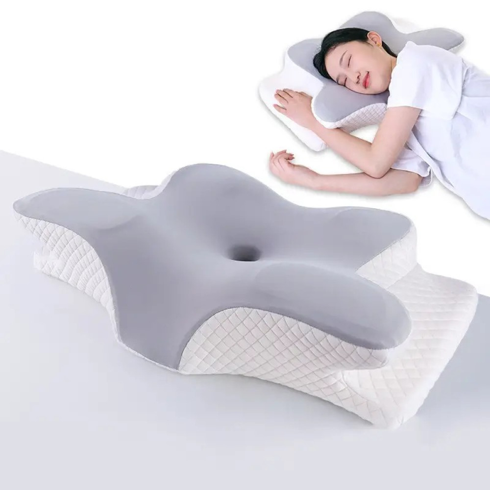 Подушка ортопедична охолоджуюча подвійної висоти анатомічна для шиї з ефектом пам’яті - створена для комфортного та здорового сну. Ергономічна форма у вигляді метелика розділена на 6 функціональних зон, які підтримують голову, шию та плечі, знімають напруження м’язів і забезпечують правильне положення хребта.