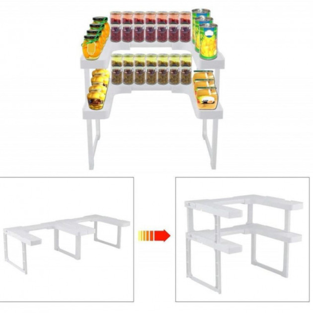 - Більше того, полиці легко укладати поверх один одного, щоб банки не загубилися у задній частині шафи.