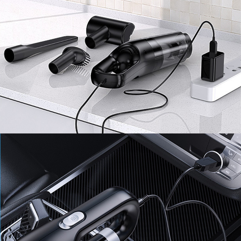 - Завдяки потужності 120 Вт портативний пилосос відмінно очищає поверхні від пилу, дрібного сміття та вовни тварин.