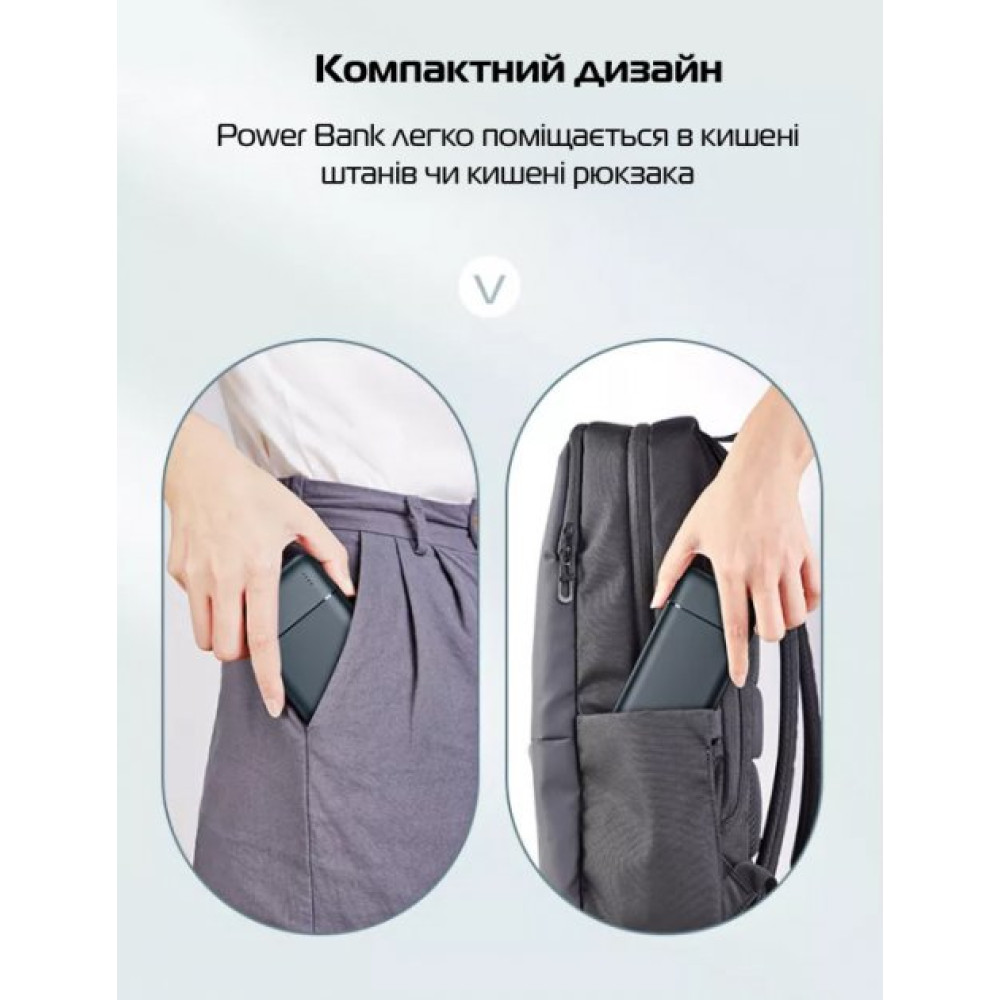 - Power Bank оснащен LED-индикатором, показивающим уровень заряда батареи.