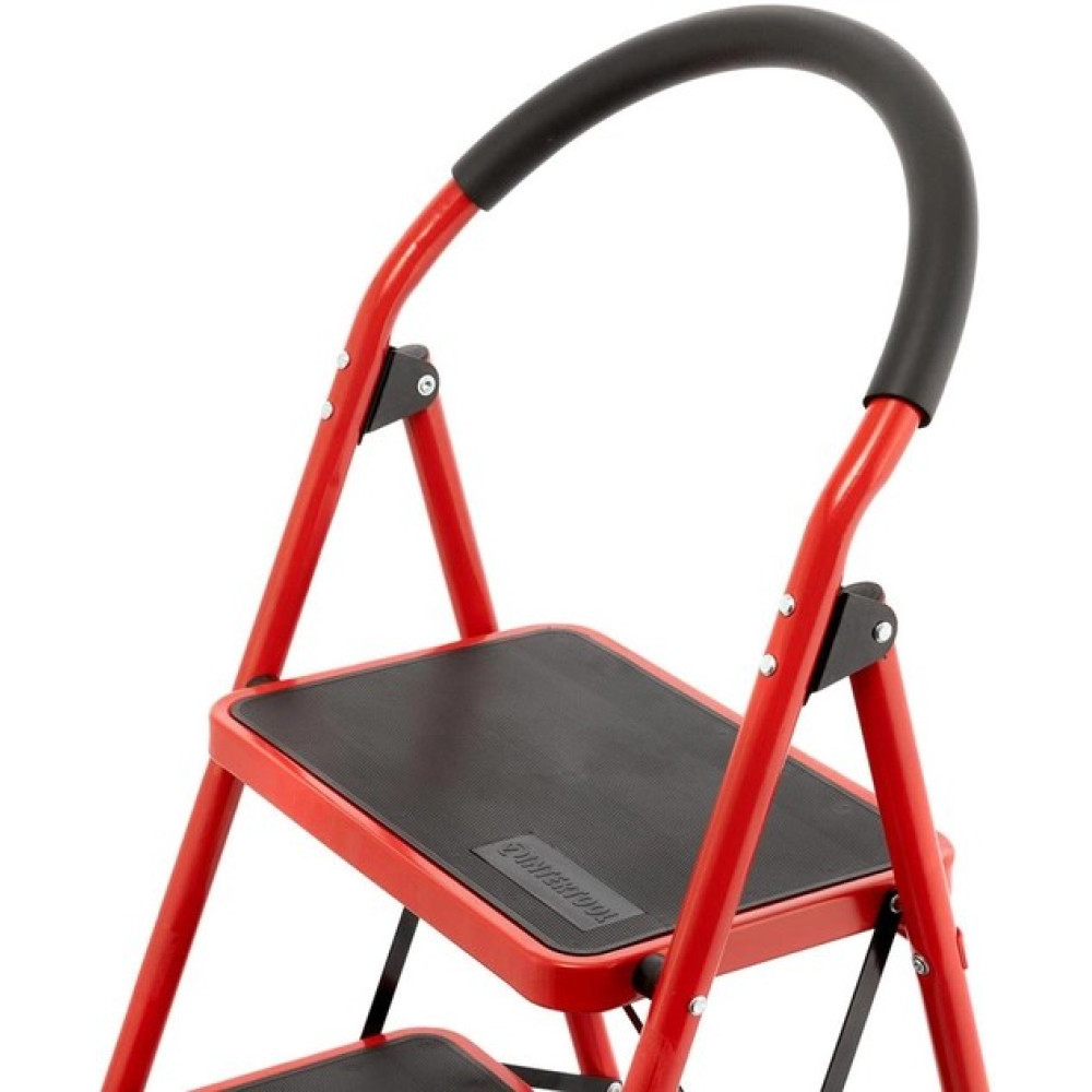 Виготовлена із надійного сталевого круглого профілю, витримує навантаження до 150 кг. Відповідає європейському стандарту. Щаблі широкі (38 х 26 см) і надійні, на них ви не боїтеся впасти. Вони вкриті ковзними гумовими накладками, ви стоїте стійко!