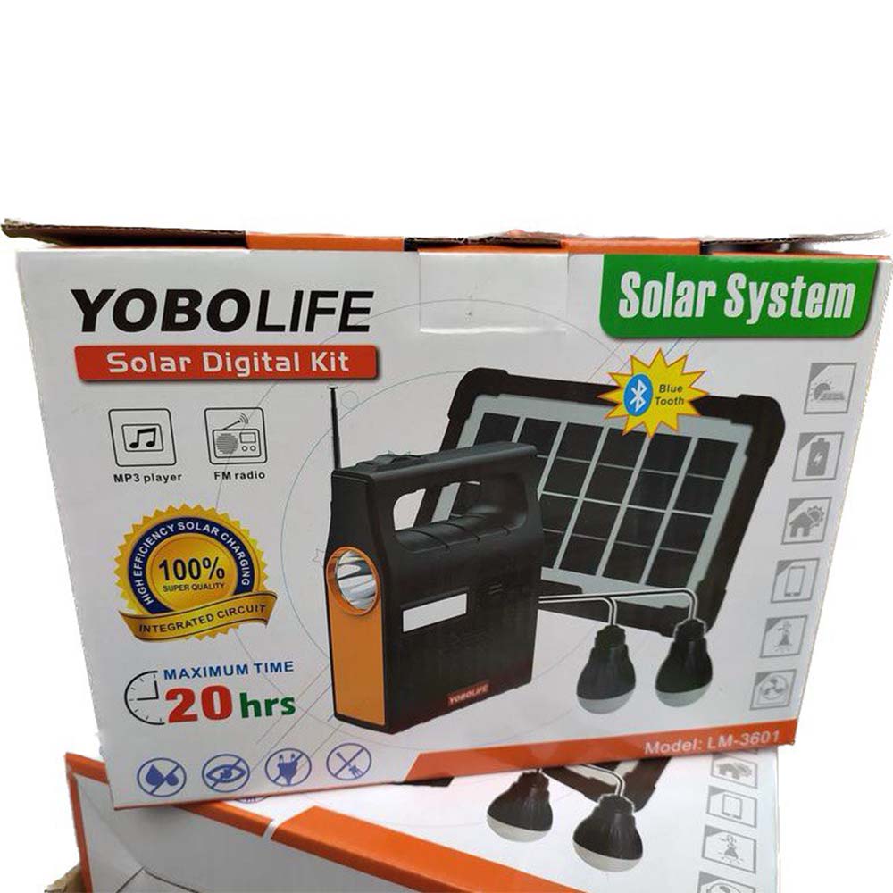 Портативна сонячна автономна система Yobolife LM-3601 прекрасно підійде як джерело світла в місцях, де його немає, в похід, на риболовлю, дачу або просто вдома, коли вимикають світло. Сам акумулятор максимально простий в експлуатації, обладнаний напрямним ліхтарем і загальним LED ліхтарем збоку. Є можливість під'єднати додатково 2 лампочки, що входять до комплекту. Портативний пристрій також можна використовувати як Power Bank з реальною потужністю 5 500 mAh, в комплект входить універсальний дріт з п'ятьма видами роз'ємів для зарядки різних типів пристроїв.