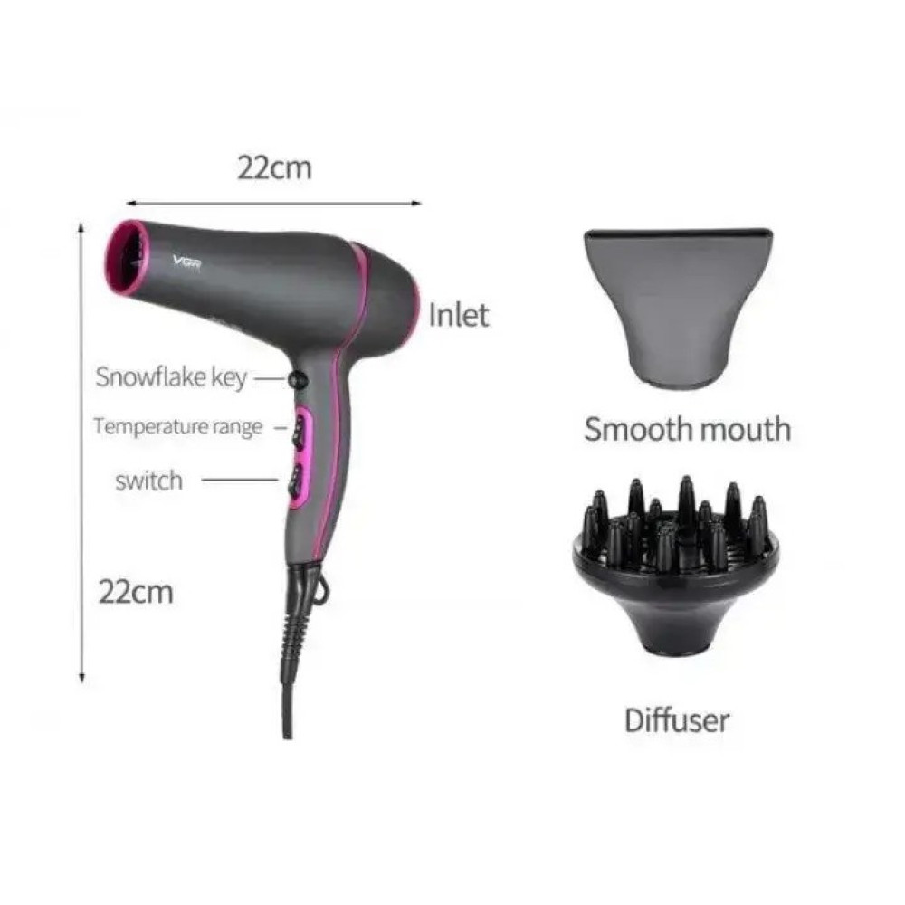 Професійний фен для волосся з насадками та дифузором 2200W VGR V-402