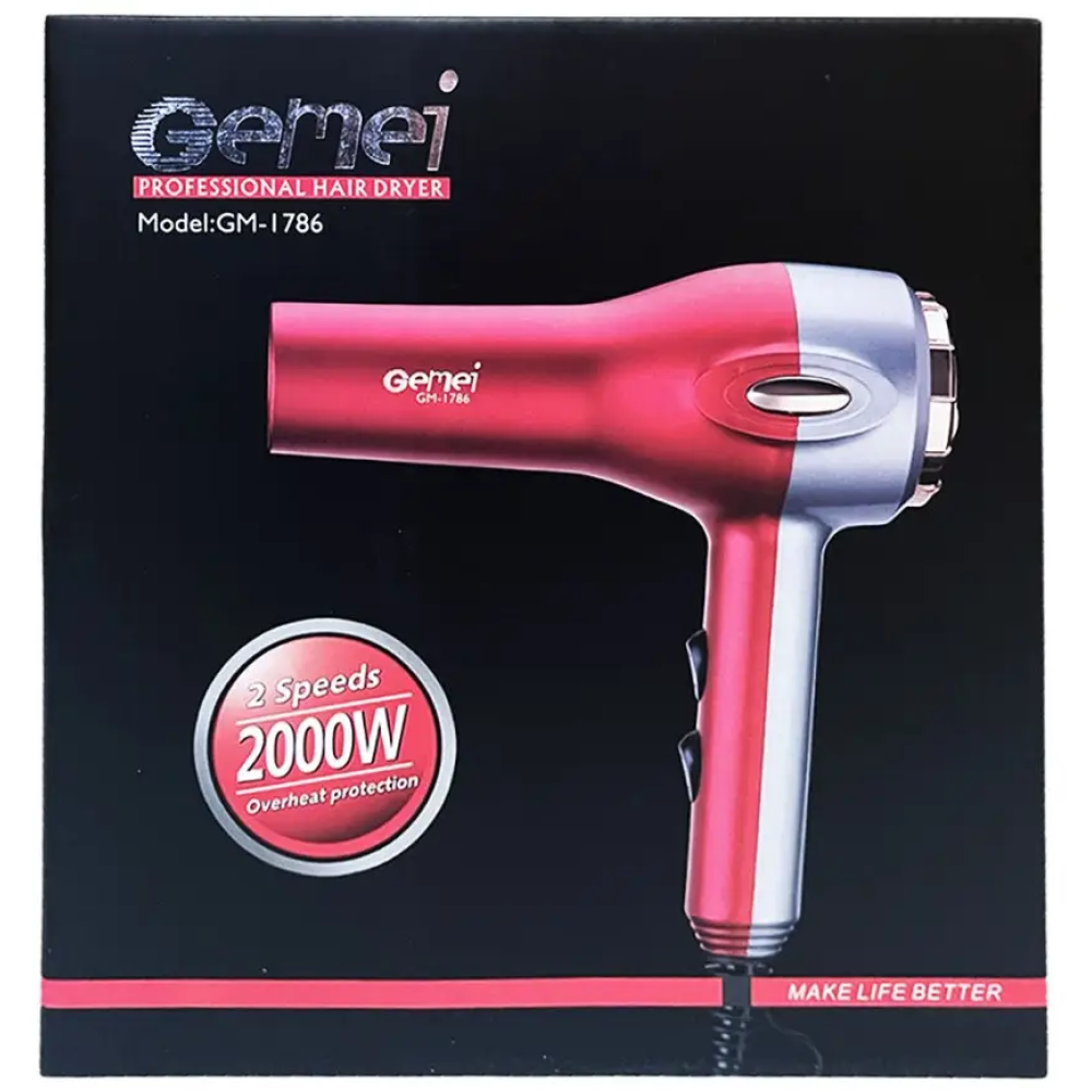 Фен для волосся Gemei GM-1786 з потужністю 2000 Вт - це професійний та ефективний пристрій для сушіння та стайлінгу волосся, який надає високу продуктивність та зручність використання. Висока потужність фена GM-1786 забезпечує швидке та ефективне сушіння волосся, скорочуючи час на укладання.