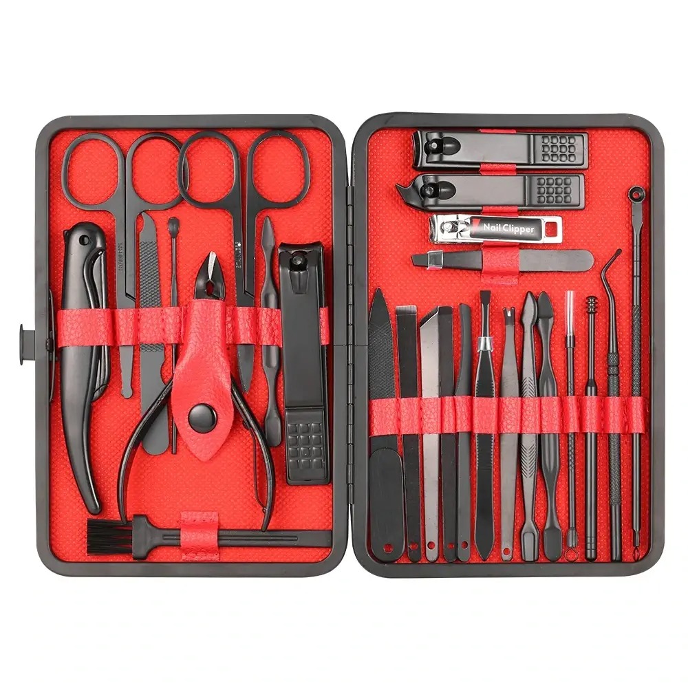 - Манікюрний – педикюрний набір складається із 26 предметів, виготовлених із міцної медичної сталі.