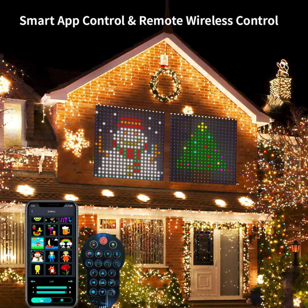Програмована новорічна LED гірлянда-штора з пультом і керуванням через телефон Bluetooth 2×2 м USB - це стильне і багатофункціональне рішення для створення святкової атмосфери в будь-якому приміщенні і на вулиці. Гірлянда розміром 2×2 метри дає змогу з'єднувати кілька таких гірлянд, створюючи вражаючі світлові стіни, які чудово підходять для новорічних прикрас, фотозон або вечірок. Гірлянда пропонує 20 різних режимів освітлення, включно з анімаціями, миготінням під музику, а також можливість додавання власних зображень. Усі налаштування здійснюються зручним способом - через пульт дистанційного керування або мобільний додаток.