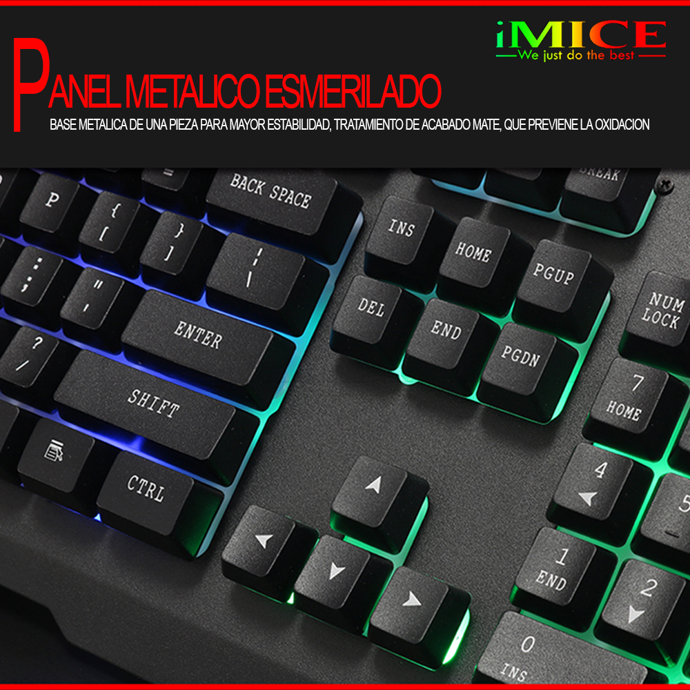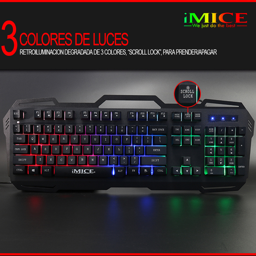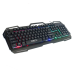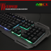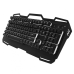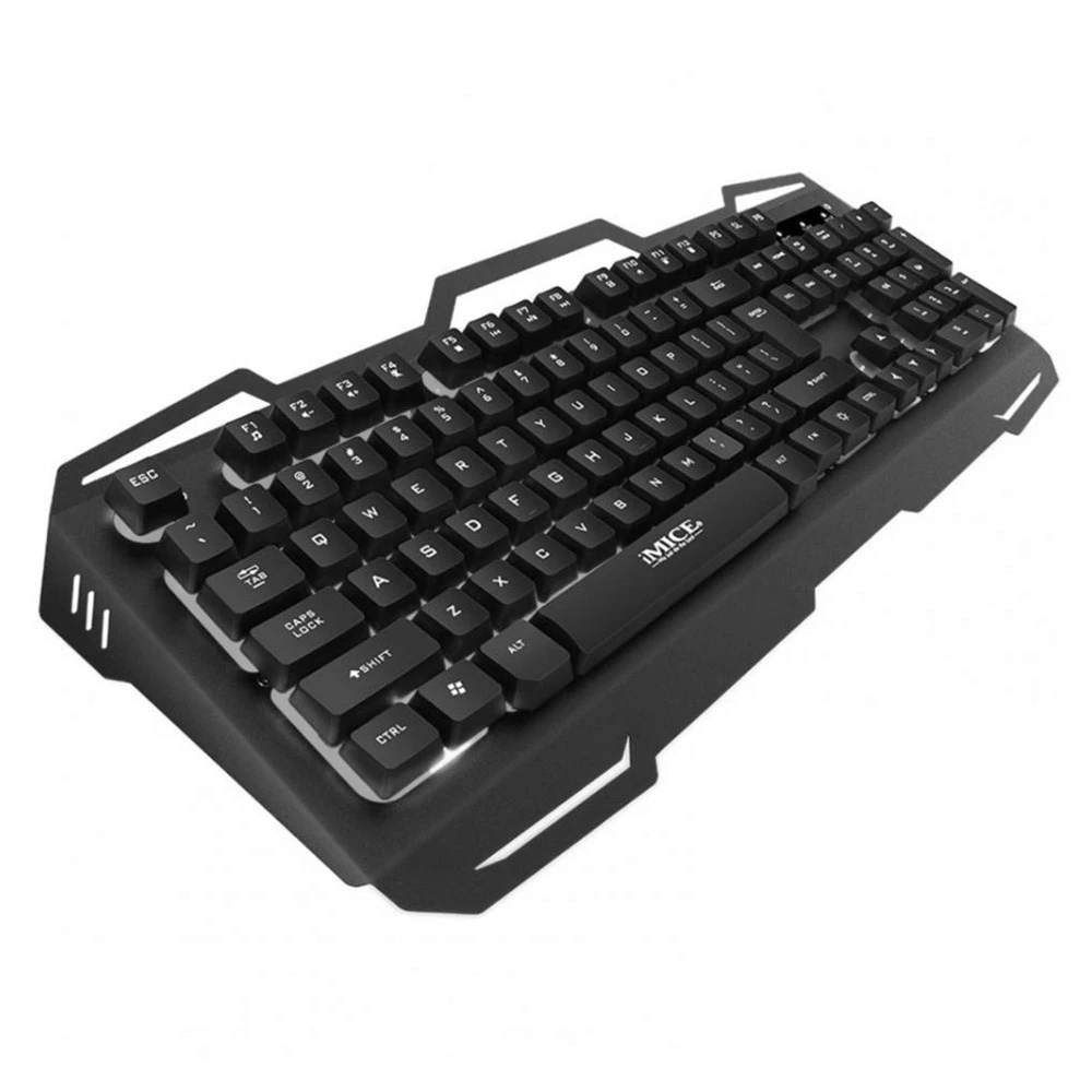 Металева, провідна клавіатура для професійних ігор з підсвічуванням. Клавіатура в оригінальному дизайні, має тримач для телефону, його ж можна використовувати, як ручку для транспортування клавіатури. У цій мембранній клавіатурі є 104 клавіші, з них 12 гарячих, які в поєднанні з клавішею "Fn" дозволяють включити ту чи іншу функцію, час відгуку 4 мілісекунди. Клавіатура має англійську розкладку. Є окрема клавіша, яка відповідає за включення та вимкнення кольорового підсвічування клавіатури. Підсвічування відбувається чотирма основними кольорами одночасно (червоний, фіолетовий, синій, салатовий). Підключення через USB - кабель.
