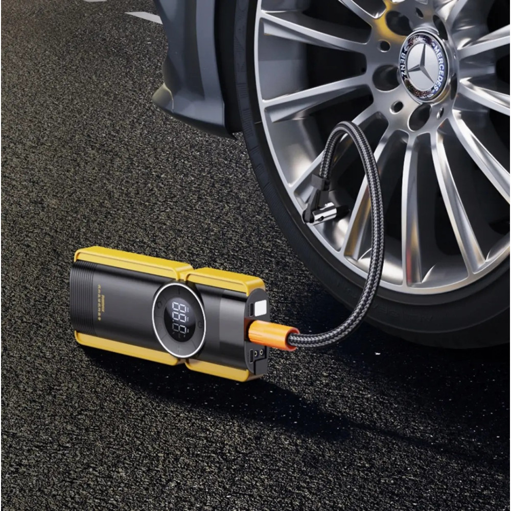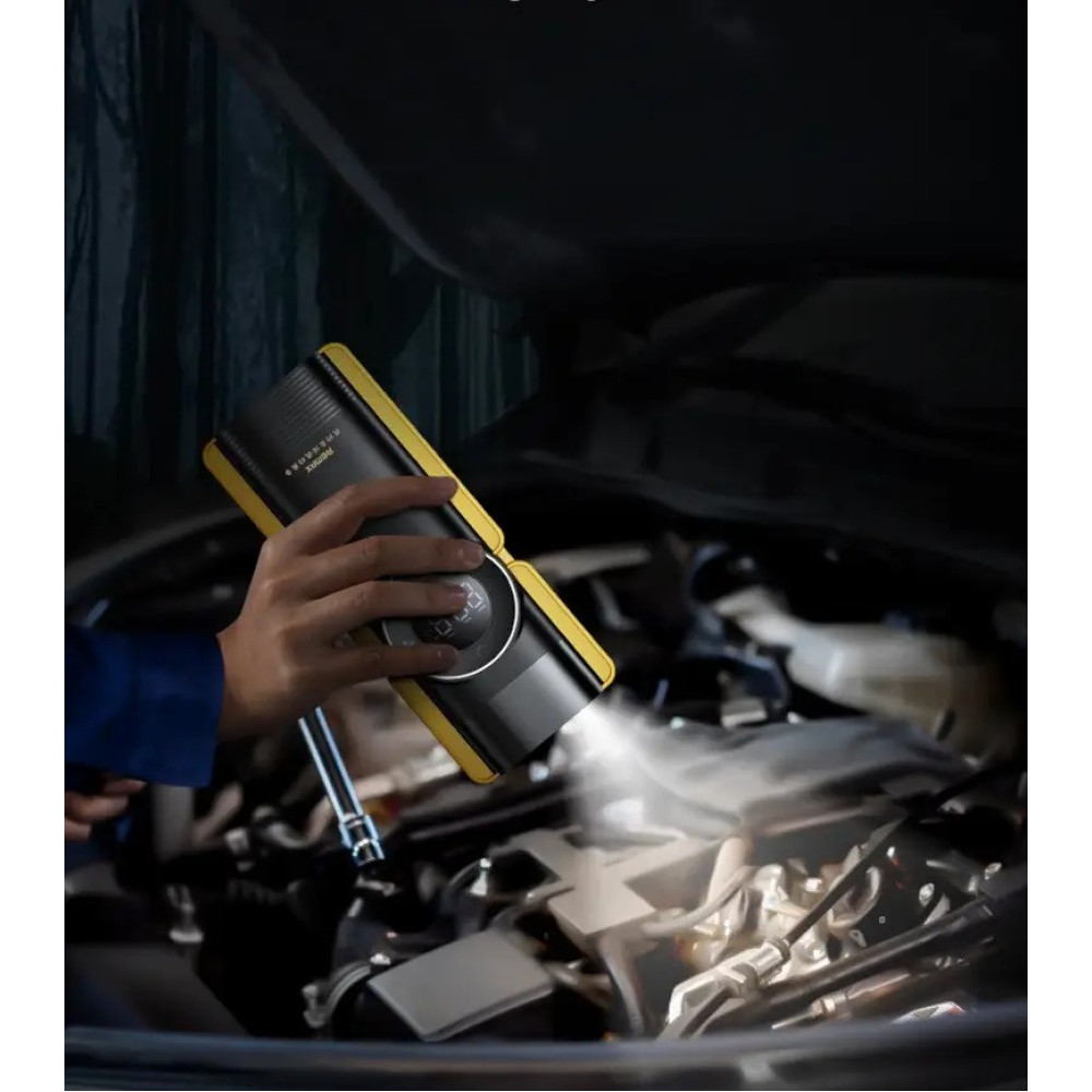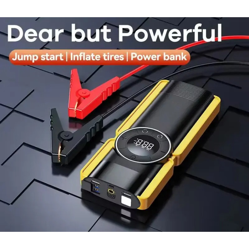 - Пауербанк Jump Starter виготовлений із високоякісних матеріалів, що робить його стійким до механічних пошкоджень та ефективним у різних погодних умовах.