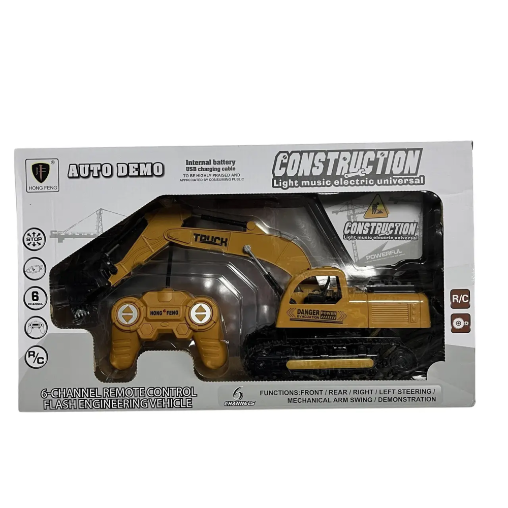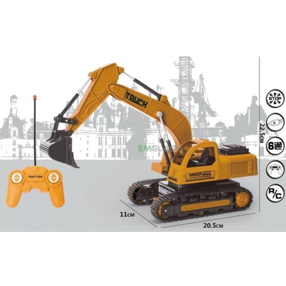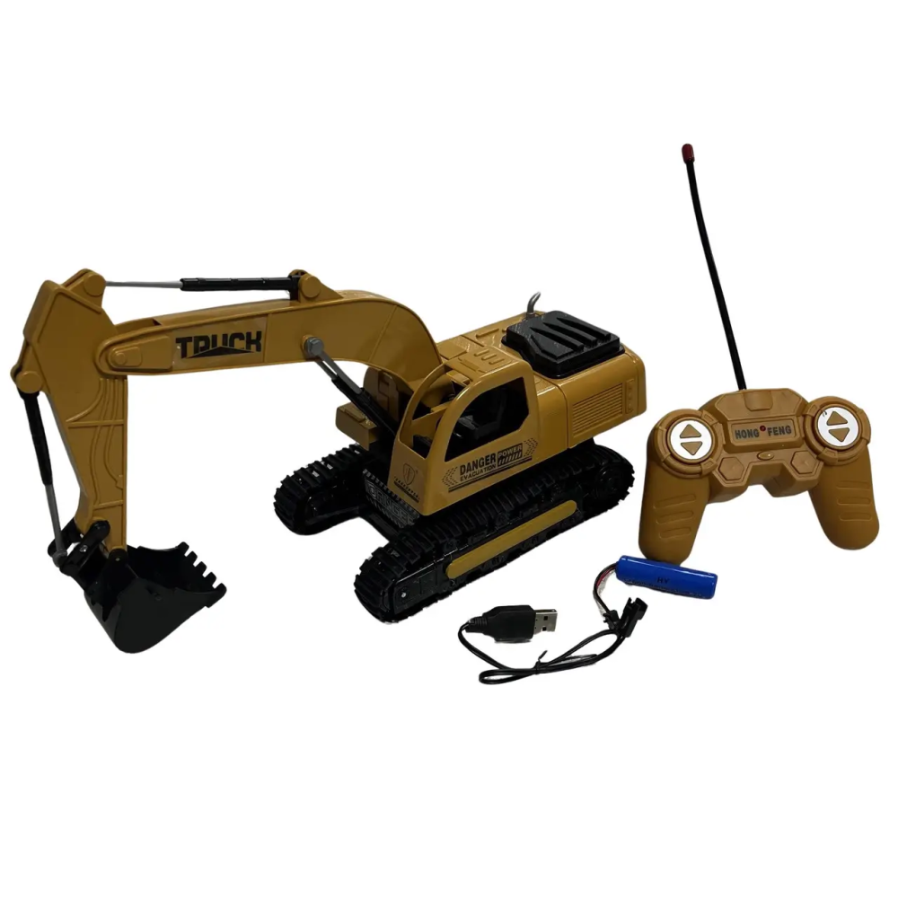 Іграшкова версія потужного будівельного екскаватора на радіокеруванні, яка має відмінну деталізацію та працює від акумулятора – справжня знахідка для юних поціновувачів спецтехніки.