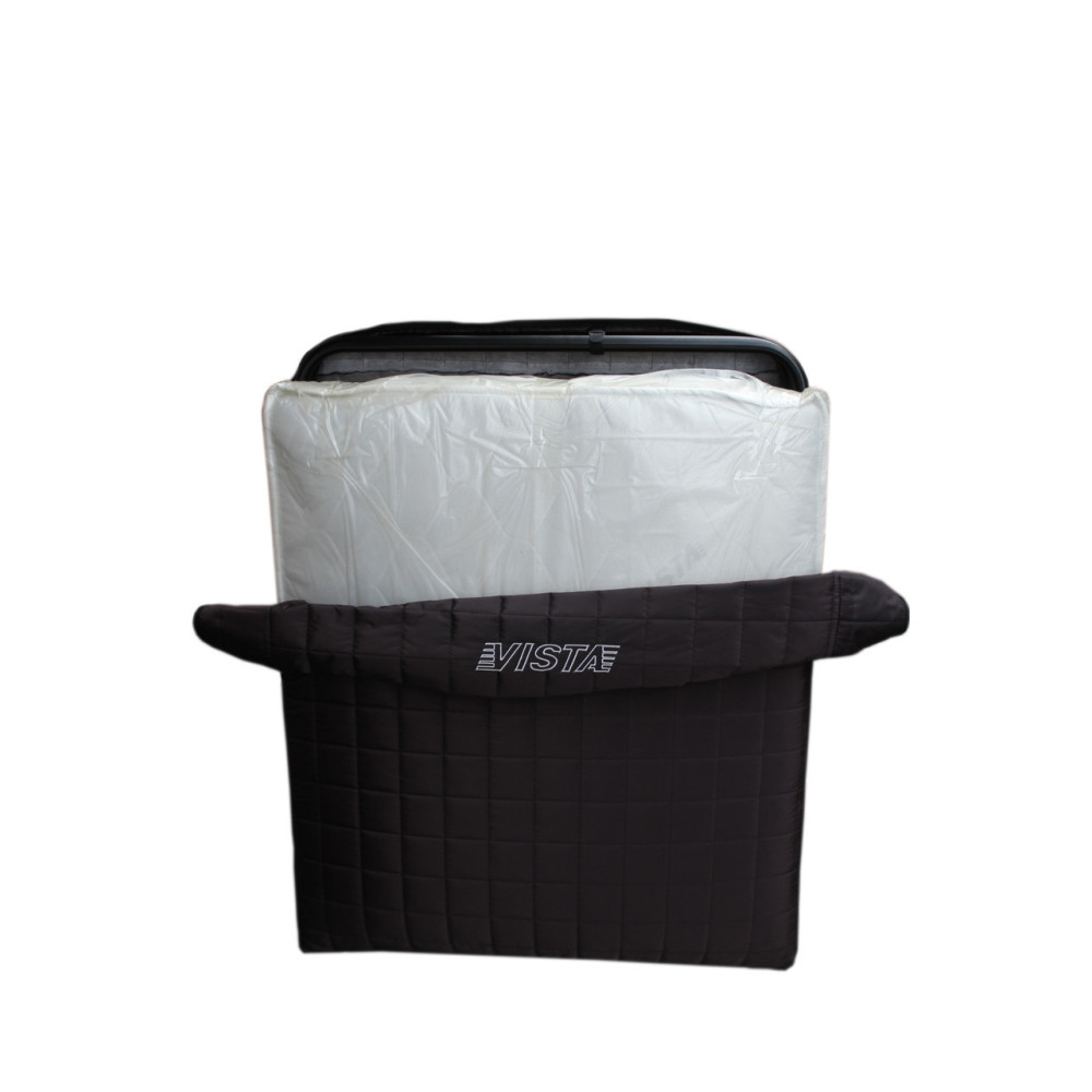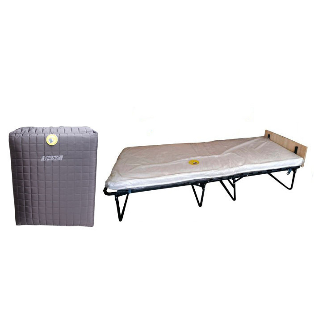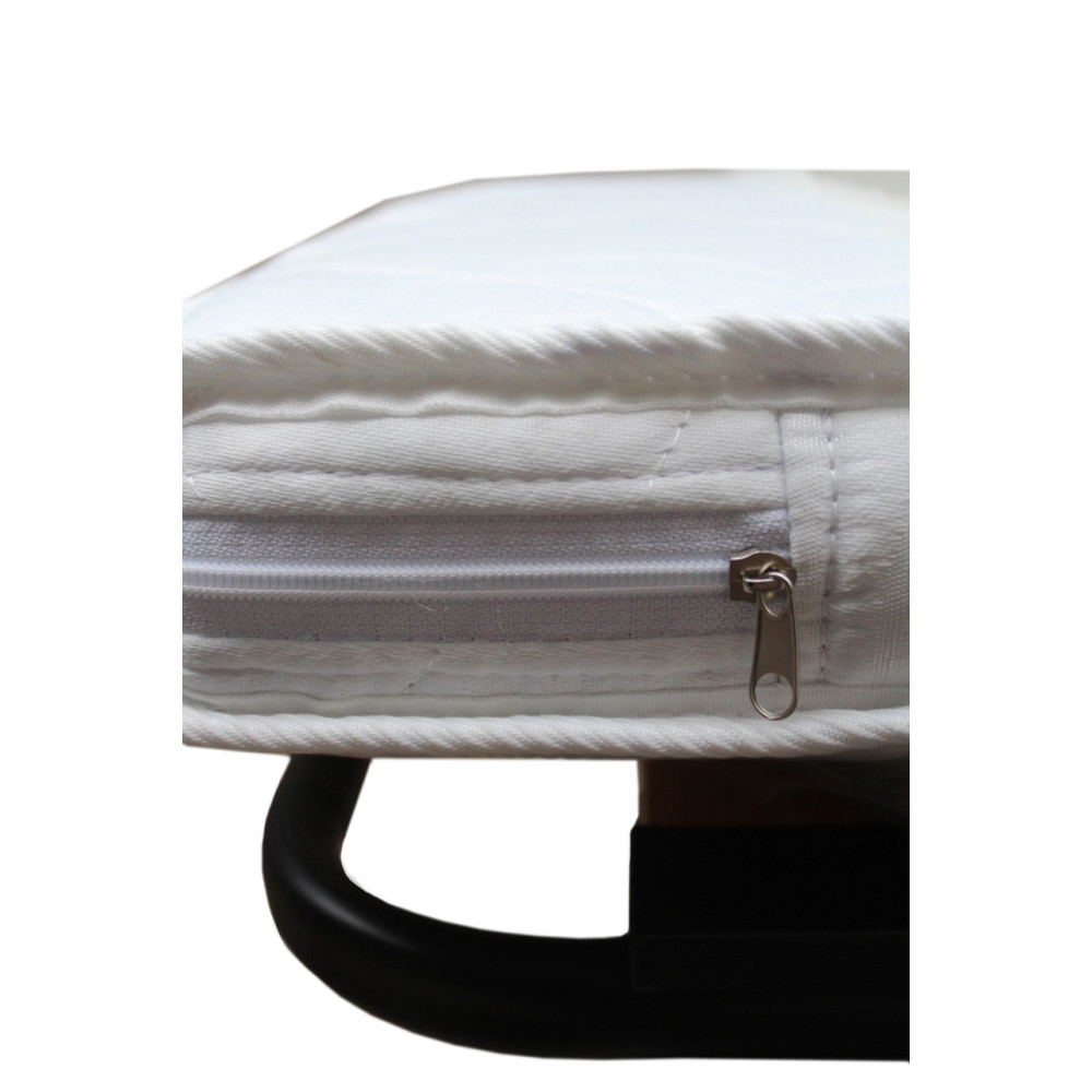 Розкладне ліжко "Cuna Filadelf" має міцний сталевий каркас із труби 20х20х1 мм. з напівавтоматичною системою складання та розкладання ніжок, а також 16 ламелей. Для зручності переміщення у складеному вигляді, ліжко оснащене 4 коліщатками. Матрац ліжка складається із двох частин. М'який наповнювач матраца – поролон товщиною 8 см. Покриття матраца виготовлене з бязі. Також у комплекті йде чохол для зберігання.