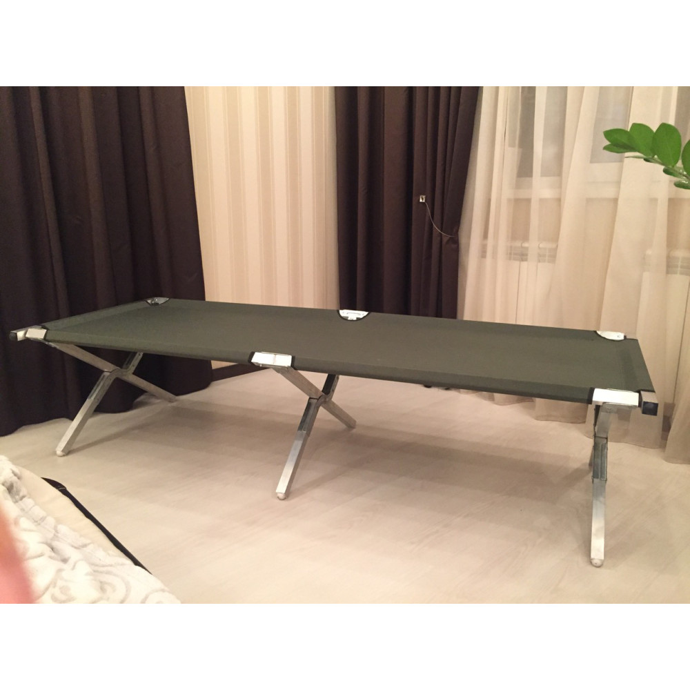 Міцна, легка, компактна розкладачка "НАТО", з алюмінієвим каркасом відмінно підійде для виїздів на пікнік, рибалку і дачу. Каркас розкладачки - авіаційний алюміній діаметр 20 мм, з товщиною стінки 1 мм.