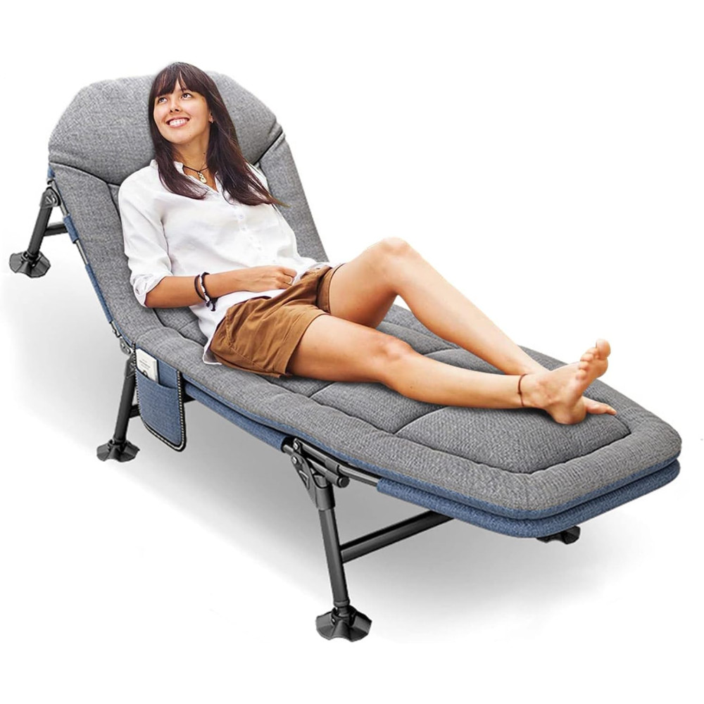 Наша розкладачка з матрацом є універсальним предметом для використання вдома і компактними похідними меблями, які не займають багато місця при зберіганні. За потреби вона перетворюється на повноцінне спальне місце.