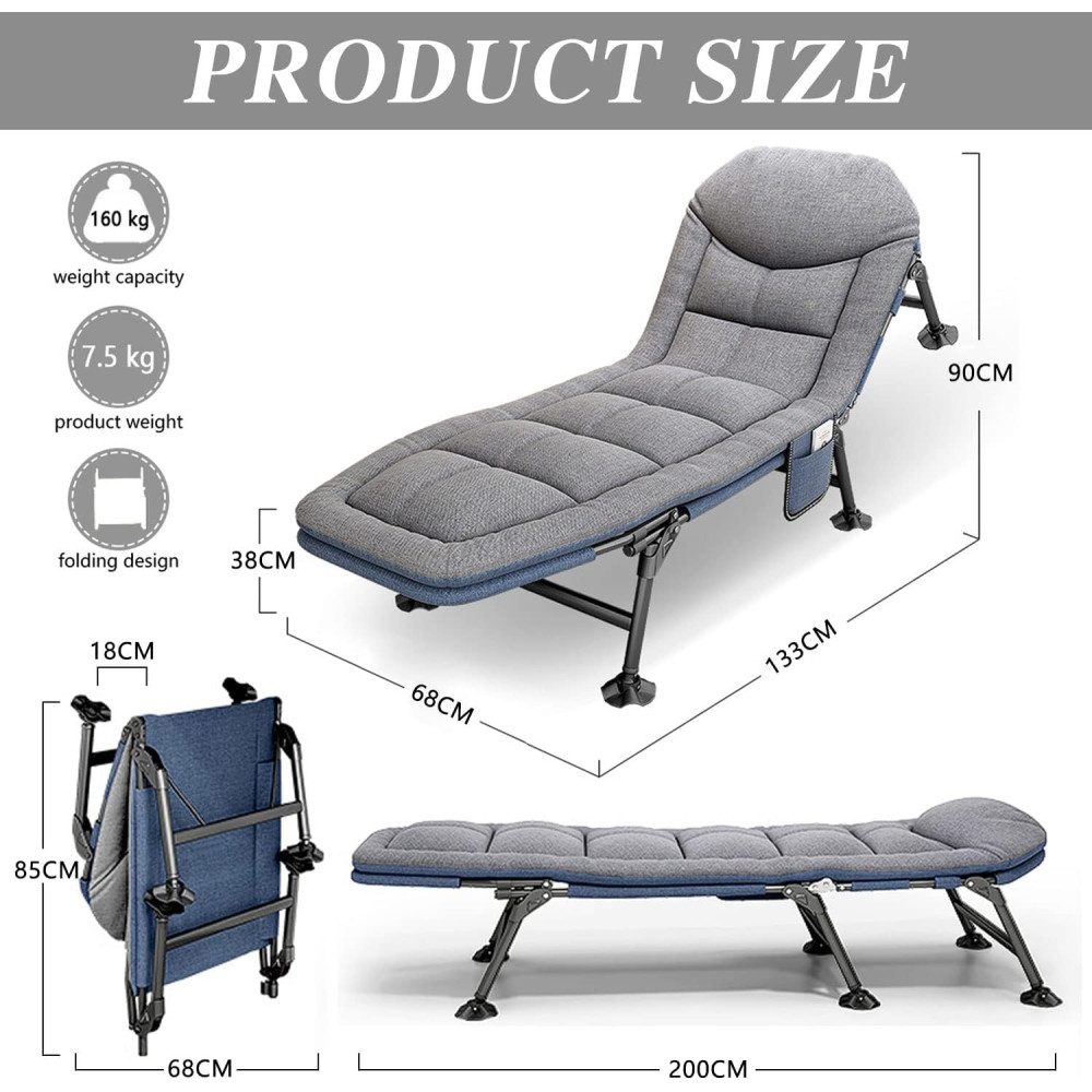 Ця туристична розкладачка стане вам у нагоді для сну в кемпінгу. Складаний лежак зручно встановлювати в наметі, і на теплому та м'якому матраці спати комфортніше, ніж на землі у спальному мішку. На пікніку приємно відпочити у кріслі-шезлонгу. Лежак легко перетворюється з ліжка на стілець. Спинка легко перекладається із положення лежачи в напівлежаче або сидяче положення.