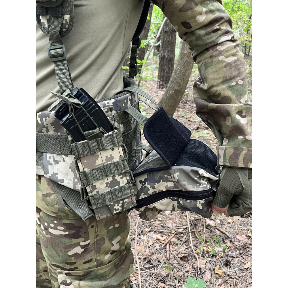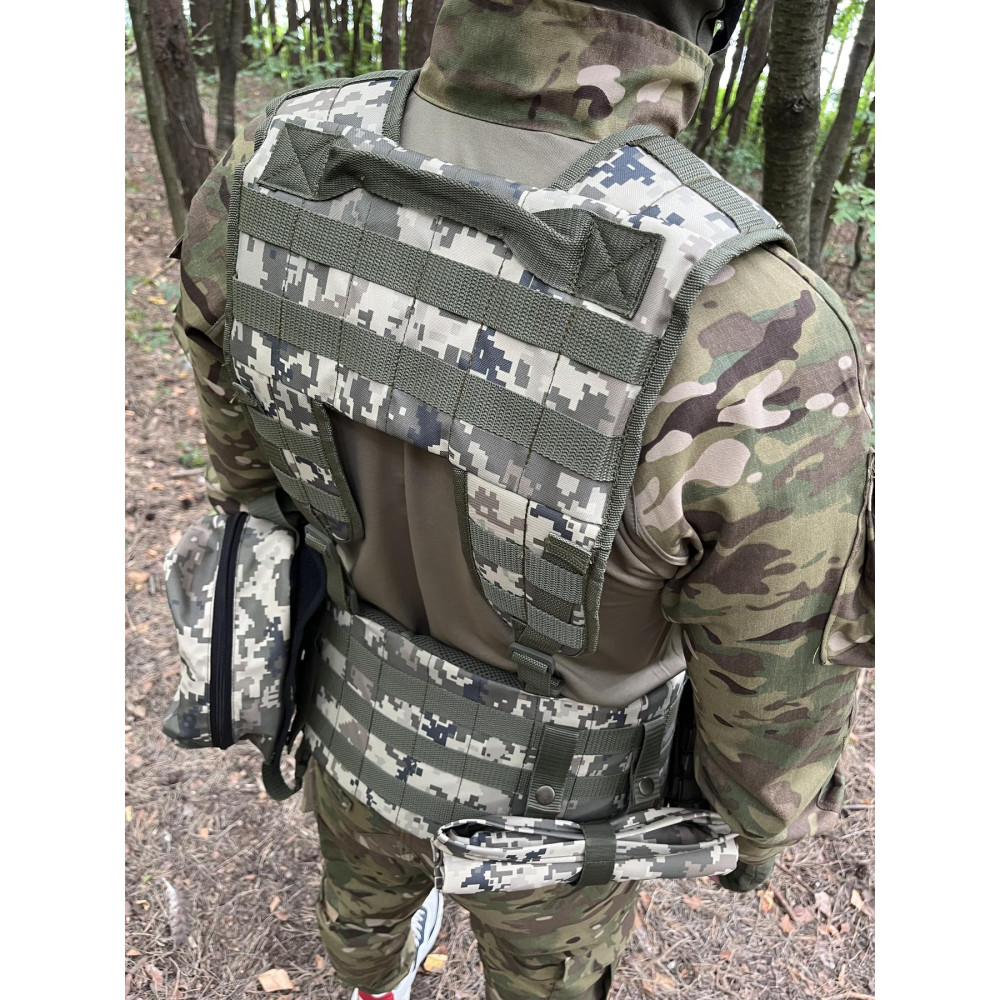 Ремінно Плечова Система – незамінна річ для організації та кріплення різної амуніції. Дозволяє звільнити руки та забезпечити швидкий доступ до потрібних предметів. РПС виготовлена з міцного водонепроникного Оксфорду 600D з підвищеною міцністю на роздир. Оснащений системою Molle, він дозволяє легко і швидко конфігурувати різні типи сумок, сум, кобур і т.д. Жорсткий пояс, який добре тримає форму при повній загрузці. Вентильована сітка відводить піт і створює додаткову вентиляцію у спеку. Пояс має підтяжки, завдяки яким він не зміщується під час руху і може бути більш навантажений, ніж пояси без підтяжок. Високоякісний пластиковий фастекс дозволяє швидко зняти ремінь. Пояс та лямки анатомічної форми регулюються.
