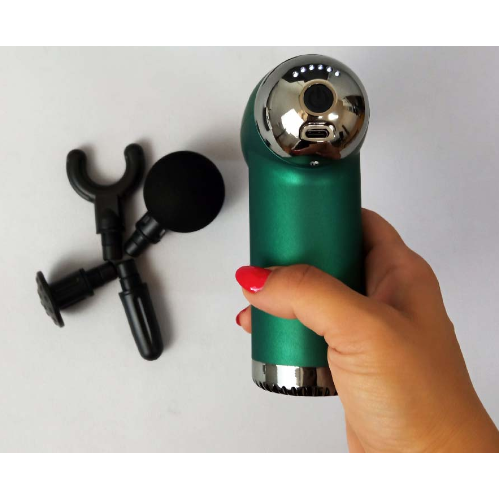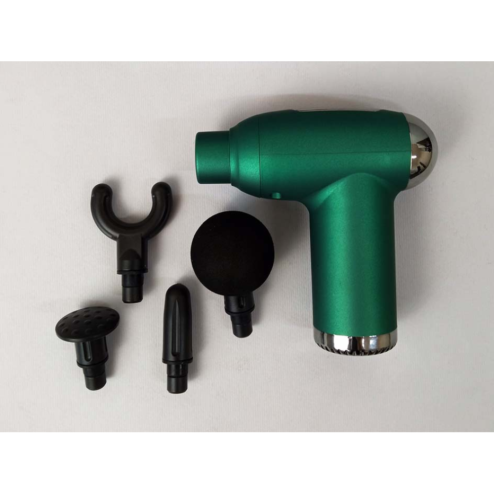 Ефект досягається за рахунок впливу на внутрішні шари сухожиль, м'язової тканини та фасції, які не викликають болю. Масажер виконаний в ергономічній формі у вигляді пістолета, він комфортно сидить у руці, ним зручно користуватися. У комплекті є 4 насадки, для впливу на певні групи м'язів ніг, сідниць, спини, грудей, зап'ястя і кісточок. Оптимальна тривалість сеансу – 15 хвилин, працює від вбудованого акумулятора.