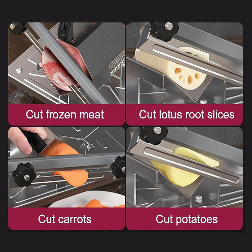 Цей нарізник заморожених продуктів усуває одну з найважчих робіт з підготовки їжі. Це допомагає нарізати заморожене м'ясо, таке як заморожена яловичина, баранина, курка, шинка та риба для різних цілей, включаючи приготування конфорки, сукіаки, начинки для піци, бутербродів або смачні страви.