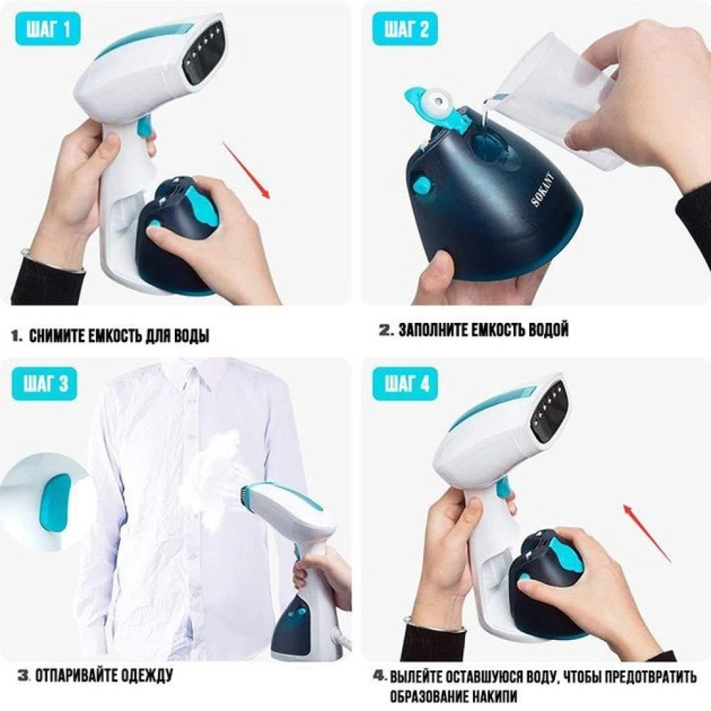Ручний відпарювач Sokany AJ-2205 дозволить вам, не знімаючи з вішалки легко і швидко розгладити одяг або тюль практично з будь-яких видів тканини: від делікатного шовку до щільного драпу або кашеміру. речі не пошкодяться, оскільки прасування відбувається за рахунок м'якого впливу гарячої пари на тканину. складки розгладжуються моментально завдяки потужній подачі пари.