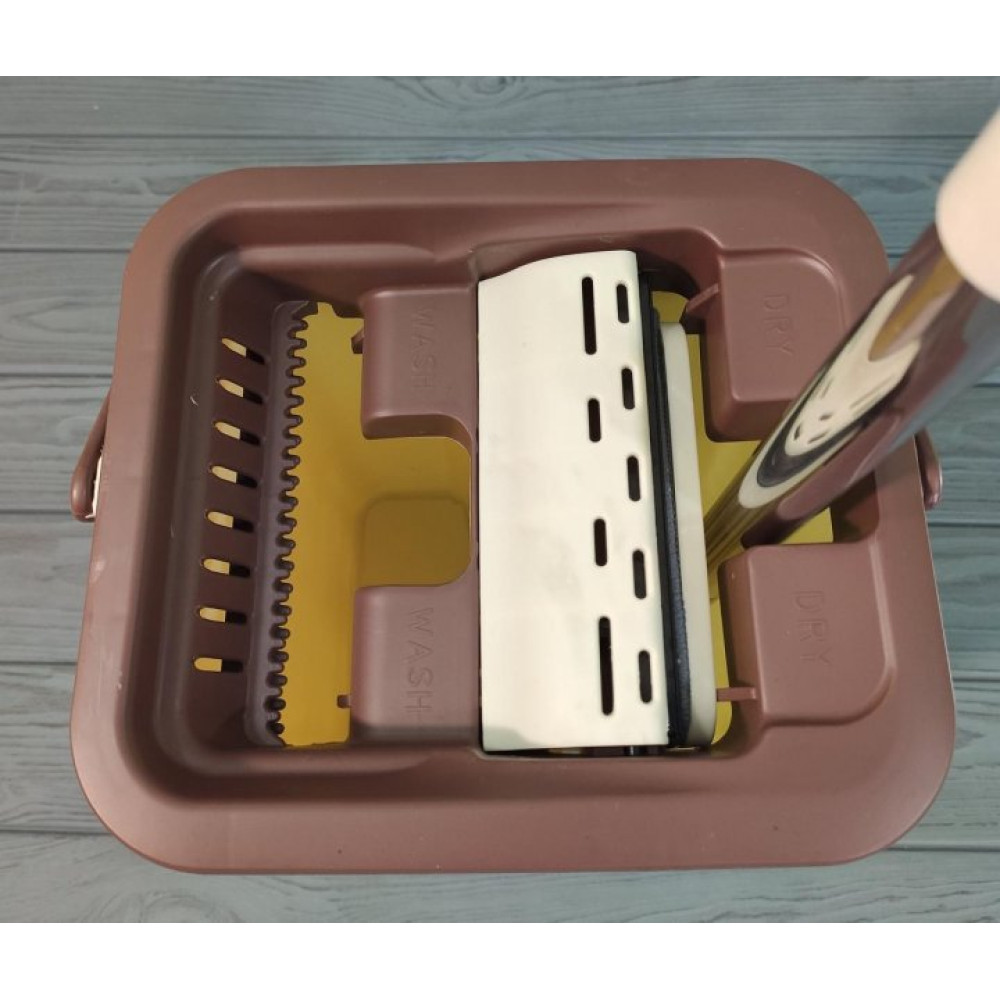 - Також у комплекті є відро із двома секціями. Одна для віджиму швабри, інша для води, в яку швабра занурюється.