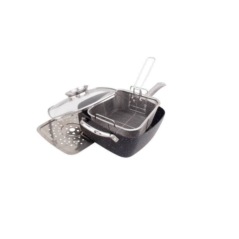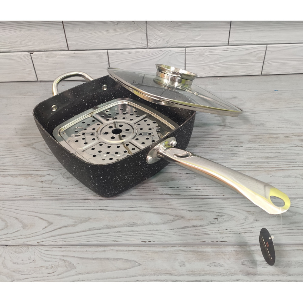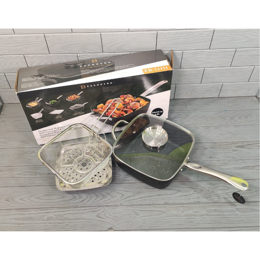 Сковорода 3в1 Edenberg EB-12111 - 24 см - високоякісна квадратна глибока сковорода призначена як сковорода, фритюрниця, деко для випічки, пароварка.
