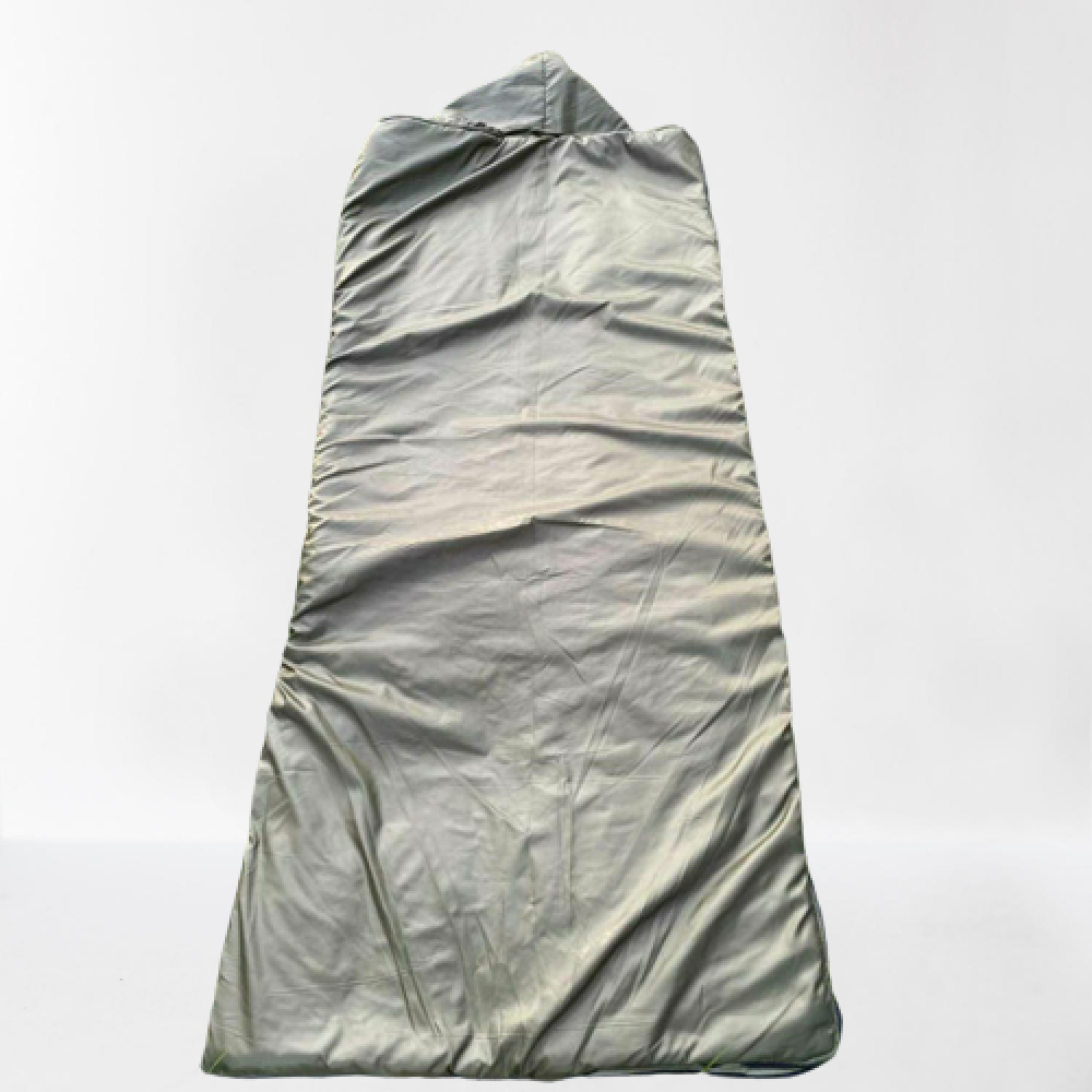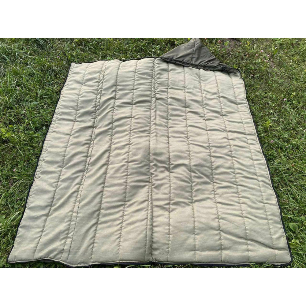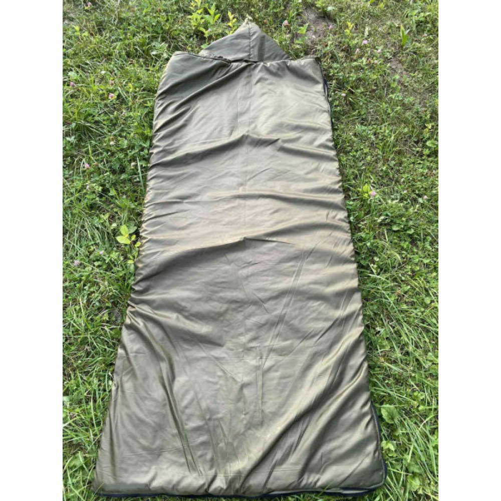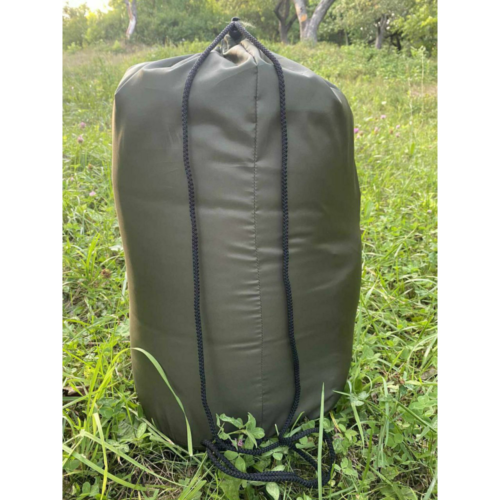 Спальний мішок ковдра - ідеально підходить для комфортного сну на природі. Виготовлений із якісної водонепроникної тканини кольору олива. Спальник легкий та міцний. Підкладна тканина стьобана з утеплювачем силікон марки 280 г/м2, який забезпечує надійний захист від холоду. Крій спальника зроблений так, що зовні майже немає швів, що не дає волозі доступу всередину. Внтурішня тканина гіпоалергенна, приємна на дотик, дихає, відмінно відновлює форму після компресійного мішка, не зминається і не збивається.