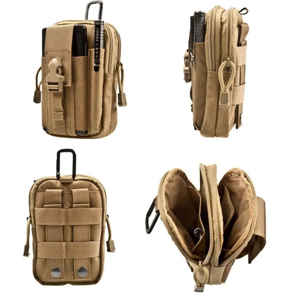 Надійна сумка-підсумок із міцної тканини, має 4 основні відділення (для телефону, ліхтарика, ручки, документів тощо). Якість 100%. Кріплення моллі надійне та зручне. Сумка для телефону у стилі мілітарі відмінно підходить для зберігання телефону, ключів, ножа, документів, ліхтарика та інших речей першої необхідності.