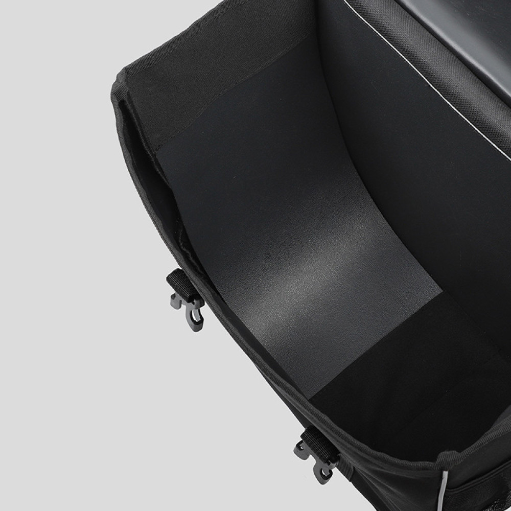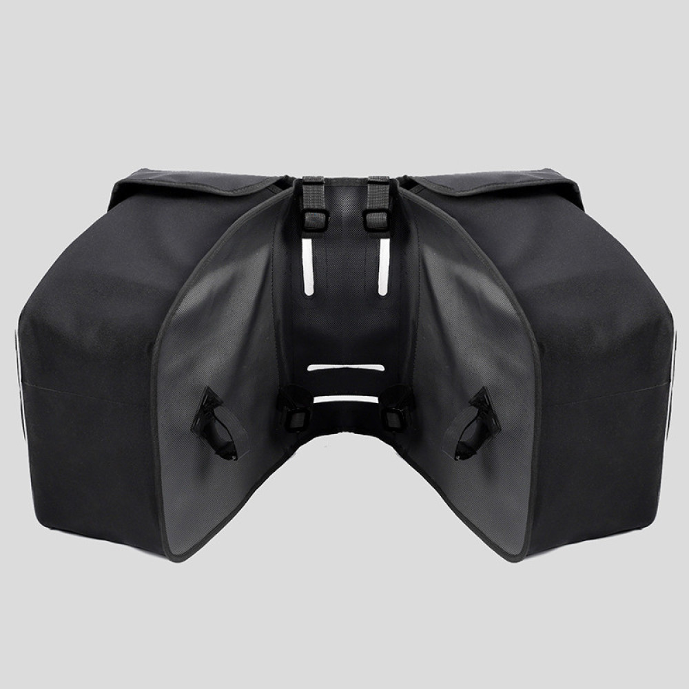 Велика та дуже містка двосекційна сумка, має зручну форму та дає змогу взяти із собою в дорогу все необхідне. Параметри цього дорожнього аксесуара дають змогу зробити виїзд за місто або далі, взявши із собою речі, без яких не обійтися. Структура її складається з двох мінівідсеків, які кріпляться на багажнику велосипеда завдяки тканинній перегородці та ременів із кріпленнями.