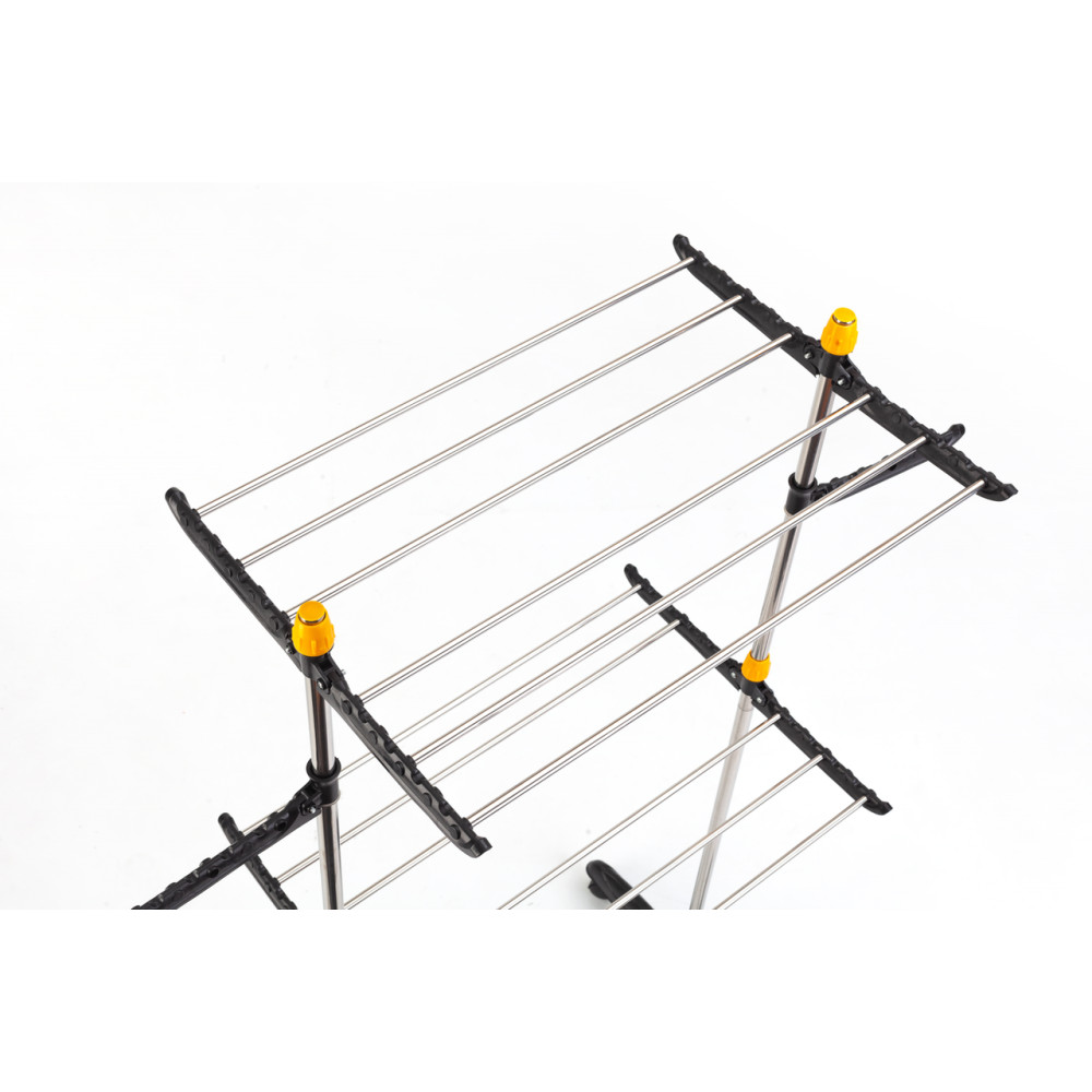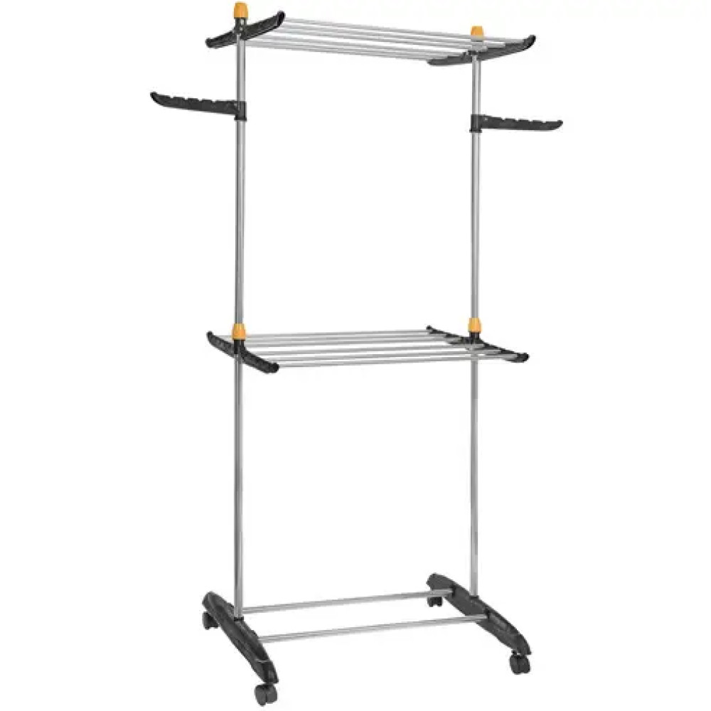 Сушарка для білизни - це дуже зручна і потрібна в господарстві річ. Влітку її можна помістити на відкритому повітрі: балконі, лоджії або навіть поставити на вулиці (якщо ви мешкаєте в частому будинку) і зручно розвісити випрані речі. При цьому не тягтися до натягнутих під стелею або між деревами мотузками. А взимку можна встановити її в кімнаті біля батареї і швидко висушити всі речі. Вертикальна, рівнева, стояча сушарка для білизни. Завдяки колесам ми можемо легко та швидко переміщати його з одного місця до іншого. Сушарка складна, тому коли вона вам не потрібна, вона легко складається і займає мало місця. Чудово підходить для приміщень з обмеженим простором. Ідеально підходить для ванних кімнат та навіть балконів.