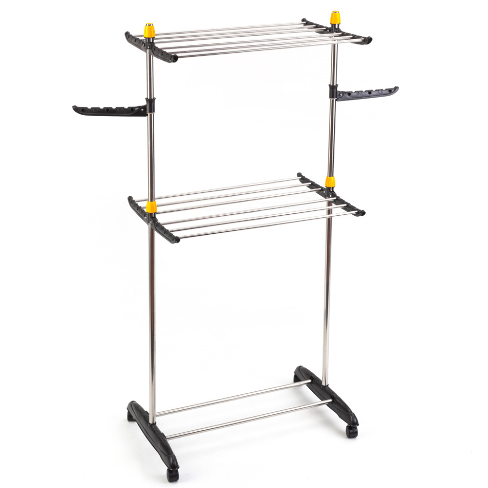 Сушарка для білизни - це дуже зручна і потрібна в господарстві річ. Влітку її можна помістити на відкритому повітрі: балконі, лоджії або навіть поставити на вулиці (якщо ви мешкаєте в частому будинку) і зручно розвісити випрані речі. При цьому не тягтися до натягнутих під стелею або між деревами мотузками. А взимку можна встановити її в кімнаті біля батареї і швидко висушити всі речі. Вертикальна, рівнева, стояча сушарка для білизни. Завдяки колесам ми можемо легко та швидко переміщати його з одного місця до іншого. Сушарка складна, тому коли вона вам не потрібна, вона легко складається і займає мало місця. Чудово підходить для приміщень з обмеженим простором. Ідеально підходить для ванних кімнат та навіть балконів.