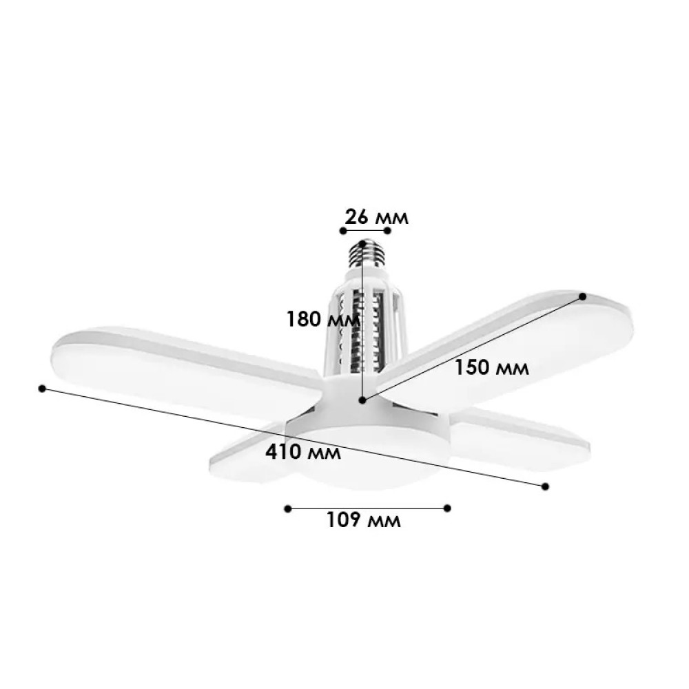 Світловий потік 4000 люмен. Стандартний патрон лампи Е27 (різьблення), універсальний. Сучасний дизайн, ефективний проти комарів та інших комах, пиленепроникний.