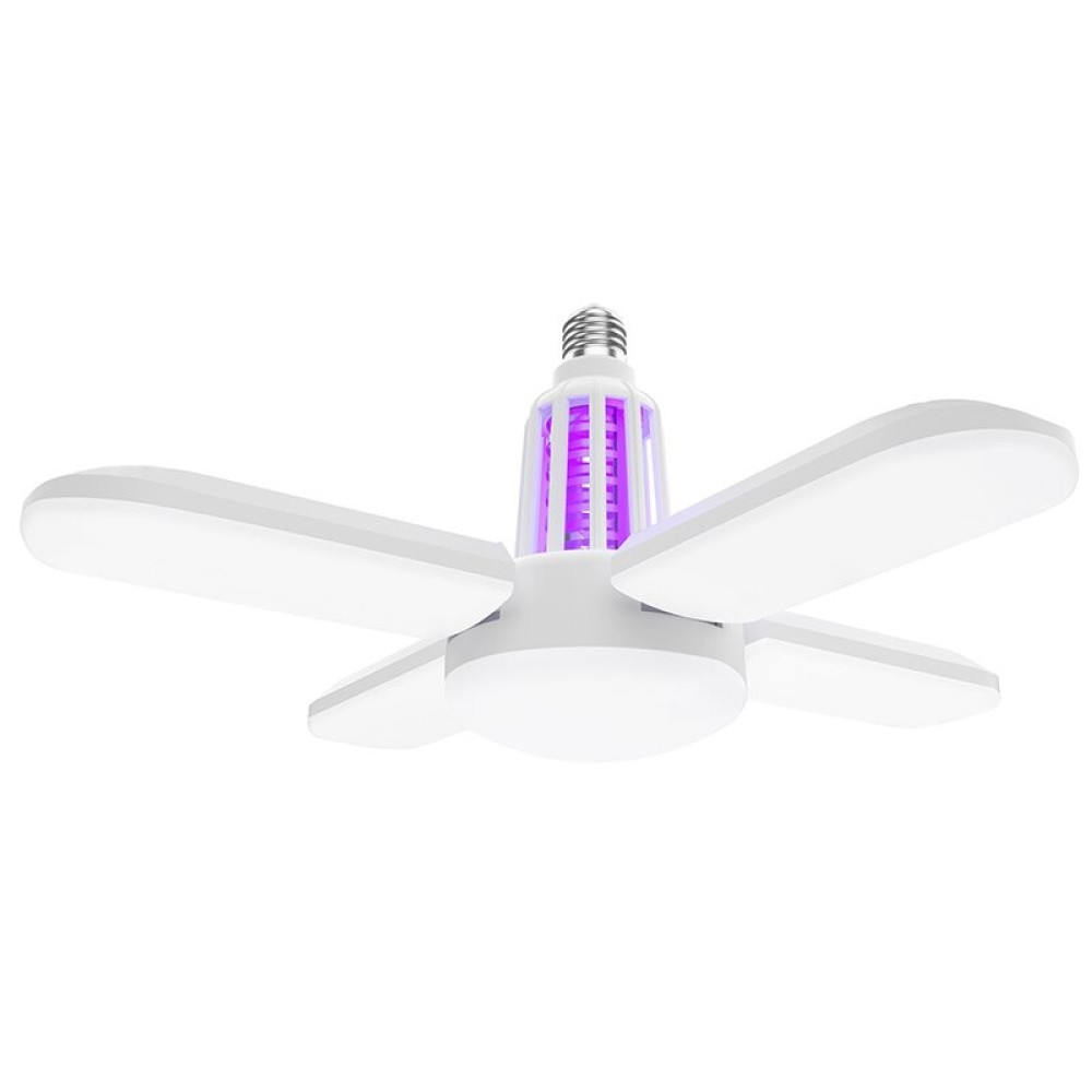Убивче світло комарів та інших нічних комах, без радіації, без отрути. Просте налаштування через перемикач (популярний тик-так), одне клацання включає світло, друге клацання включає тільки функцію знищення комарів та інших комах, залучених фіолетовим світлом, а в третє клацання включає лампу, більше вбиває комарів. Коли світло вимкнене, засіб від комарів можна включити окремо, так воно матиме більшу ефективність. бо він заманить комах просто в пастку і вб'є їх. Охоплення на 360 ° навколишнього середовища, що приваблює комарів. Світлодіодний чіп високої яскравості, патч високої яскравості 2835, висока світловіддача, низьке енергоспоживання та тривалий термін служби 50 000 годин.