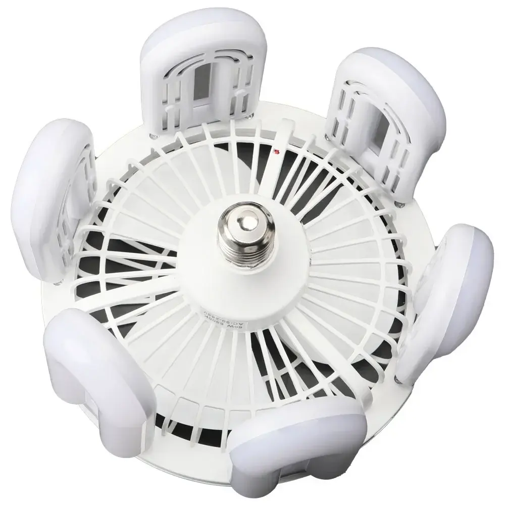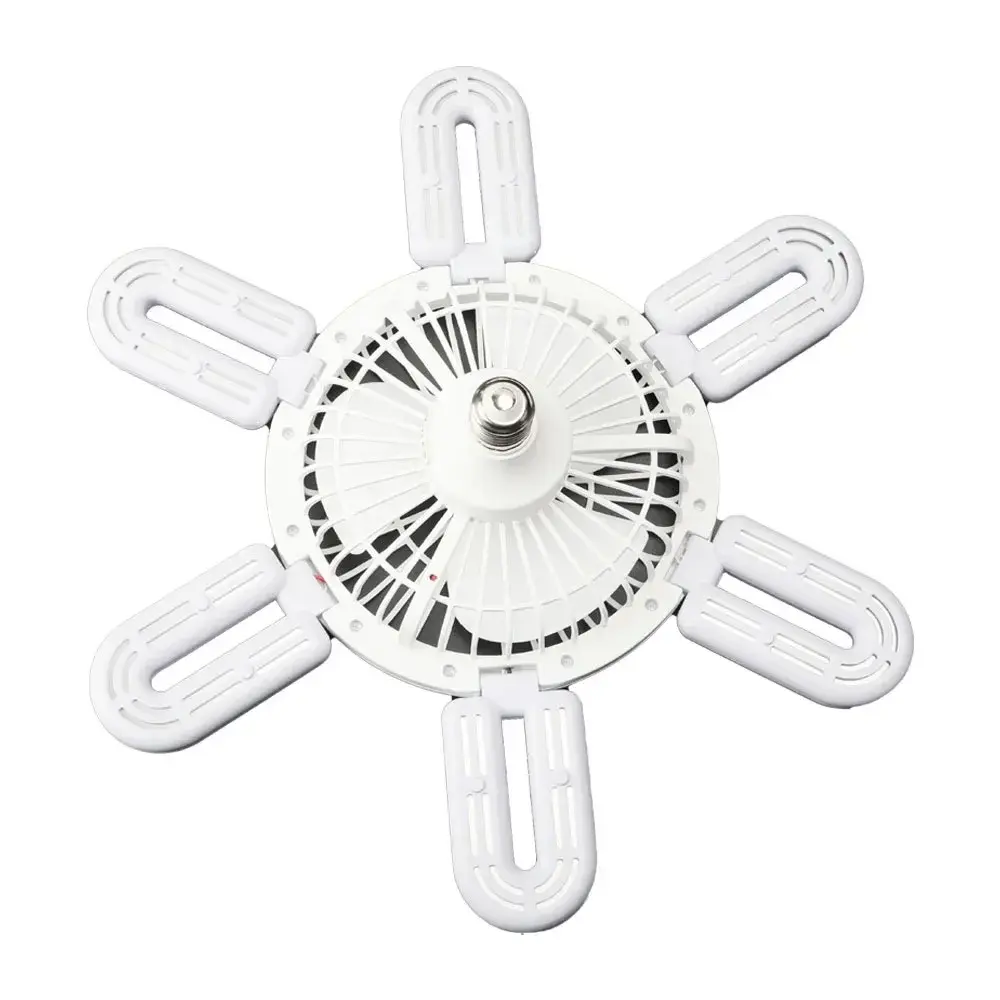 Світильник з вентилятором на різьбовому роз'ємі E28 виготовлений з якісного двигуна, має низький рівень шуму, три спіральні лопаті, стабільне обертання і потужний повітряний потік. Комплектний світильник з вентилятором і високопрозорим ковпаком, інтегрований вентилятор, легко розбирається і миється.