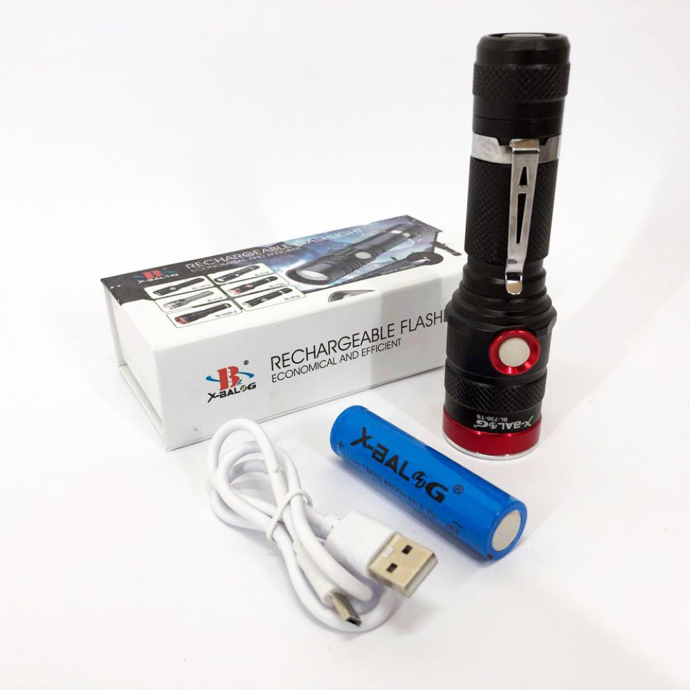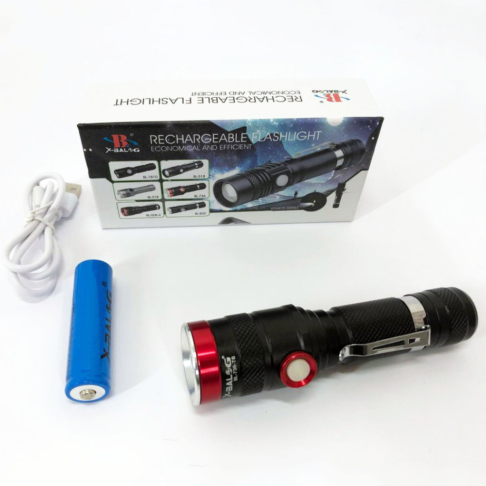 У ліхтарику X-Balog BL-736-T6 встановлений потужний світлодіод, який має відмінні експлуатаційні характеристики. Яскравість світлового потоку може змінюватись від 40% до 100%, економний режим включається просто: увімкнувши ліхтарик, натисніть і утримуйте кнопку включення, доки не ввімкнеться економний режим. Також є функція стробоскопа SOS, включається двома швидкими натисканнями на кнопку включення. А так ліхтар можна використовувати як однорежимний. Zoom (масштабування) виконується легким рухом однієї руки.