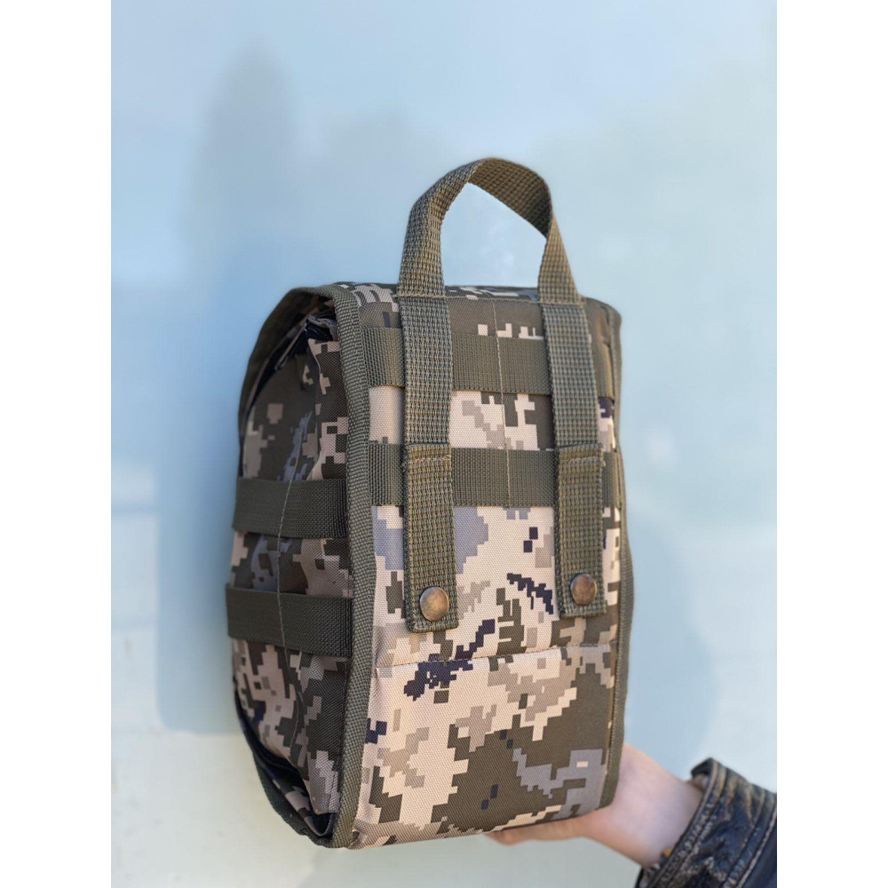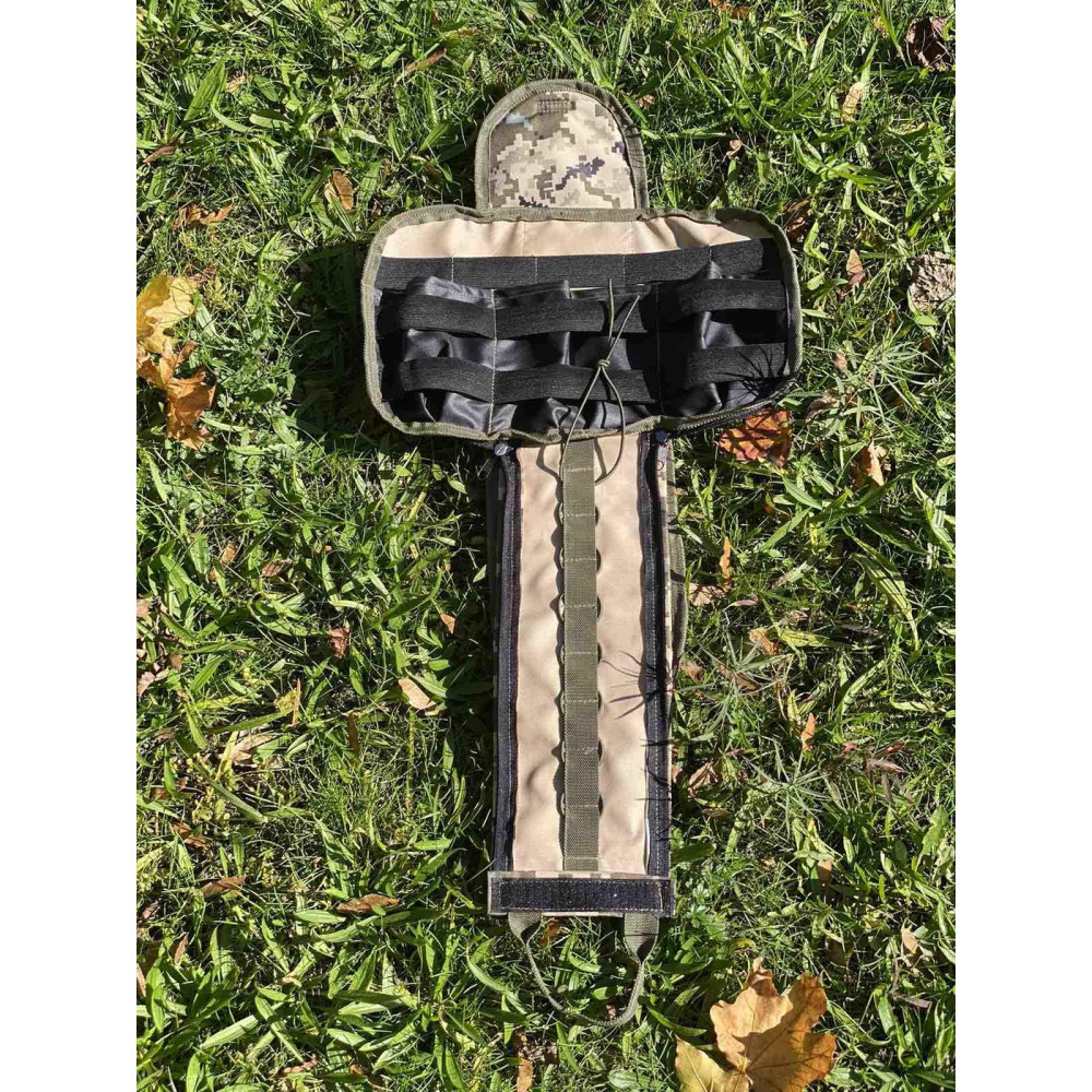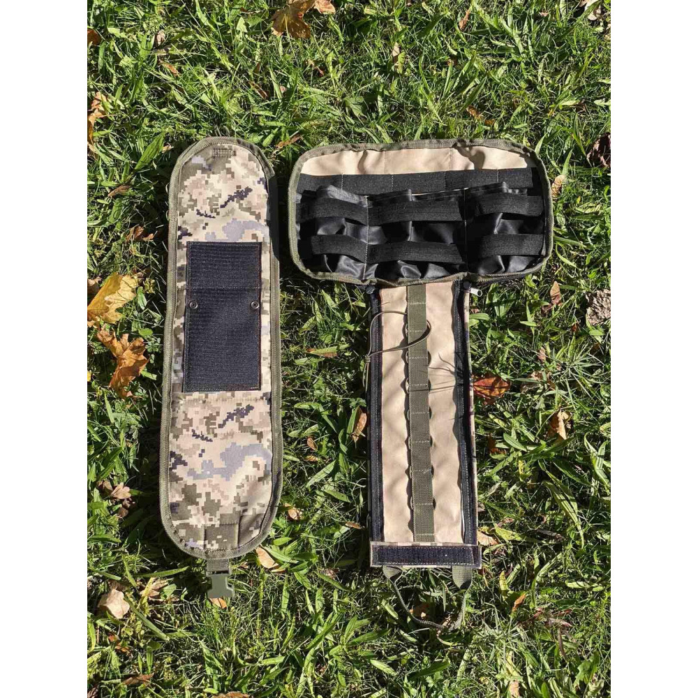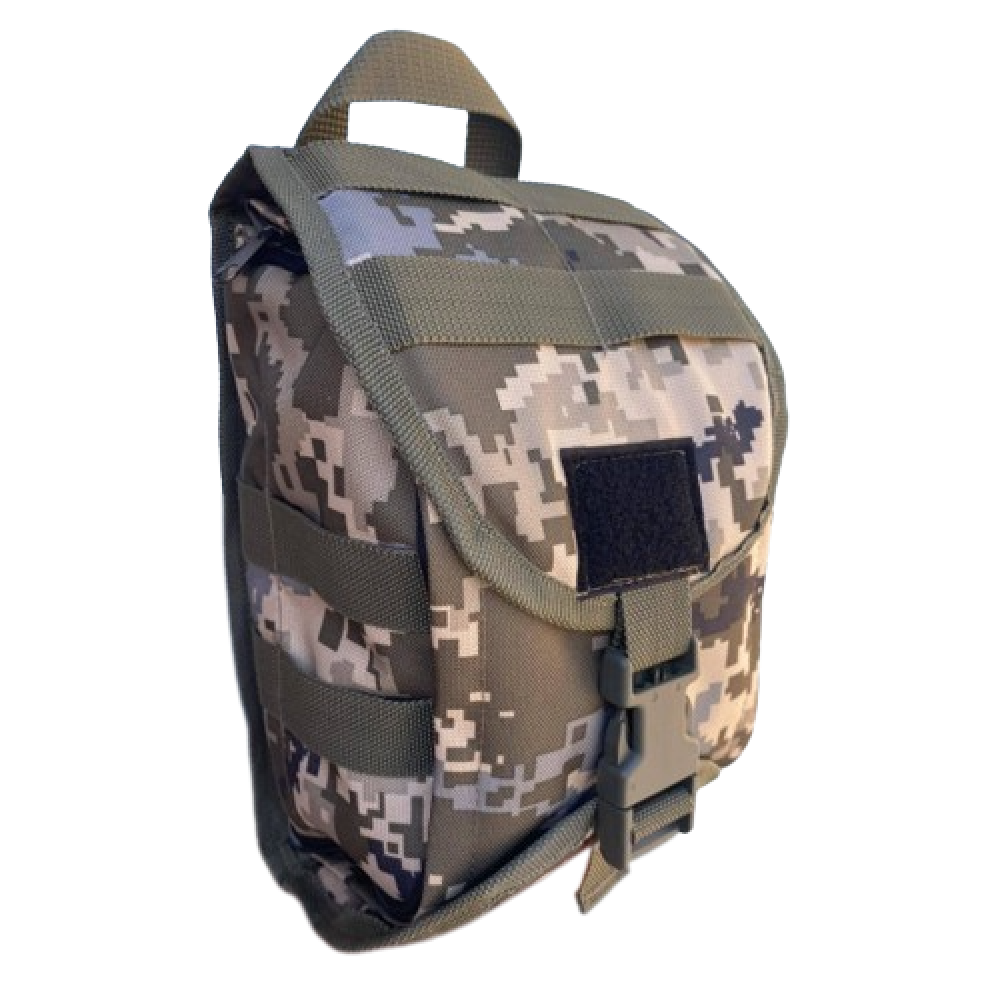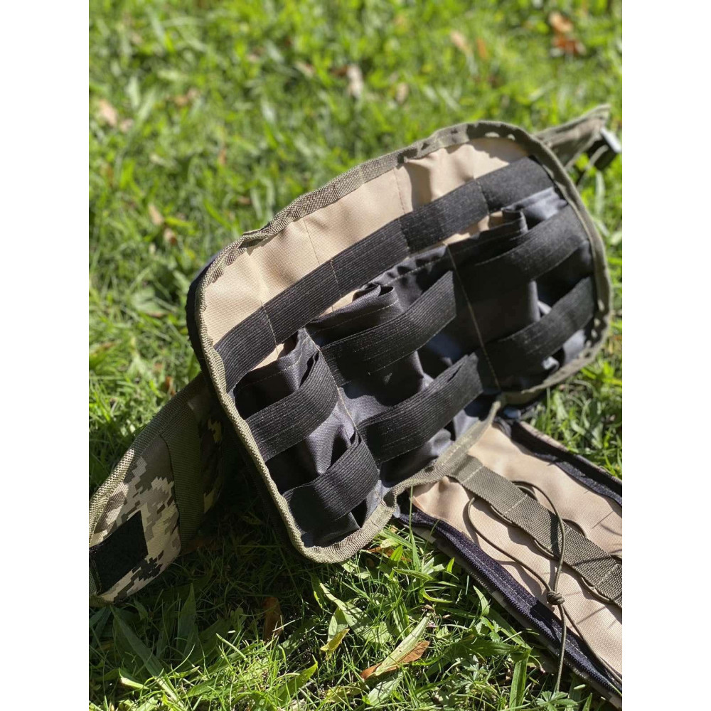 Тактичний підсумок для аптечки - універсальний модульний підсумок для зручної організації особистої аптечки. Усередині зручно розташовані три кишені - дві бічні та середні великі подвійні, також є регульований еластичний шнур та багато варіантів еластичних подвійних кріплень.