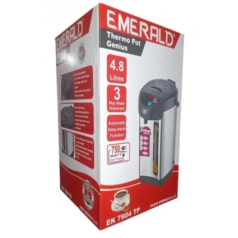 Термопот EMERALD EK 7904 TP - дуже функціональний і незамінний елемент кухні будинку або офісу. Добре підходить для невеликих заходів. Вам не доведеться постійно вмикати електричний чайник, щоб приготувати гарячі напої. Термопот завжди Вам подає кип'ячену воду, що робить роботу значно швидше, а використання побутового термопоту економічніше.