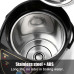 Панель керування блокується для запобігання випадковому включенню. Автоматичне відключення при закипанні та недостатній кількості води забезпечують безпеку використання. Шкала рівня води та LED-індикатори режимів роботи допомагають контролювати процес.