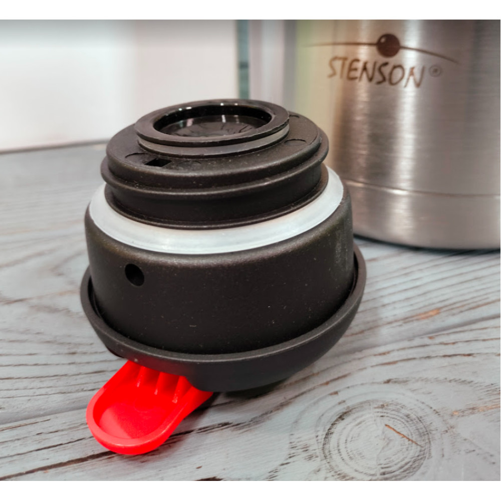 - Кришка з пластику, добре та щільно прилягає до горловини термоса, чудово зберігаючи температуру всередині термоса.