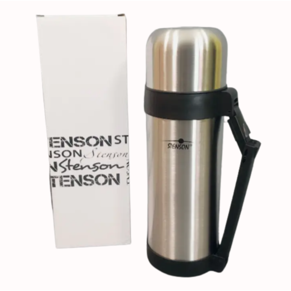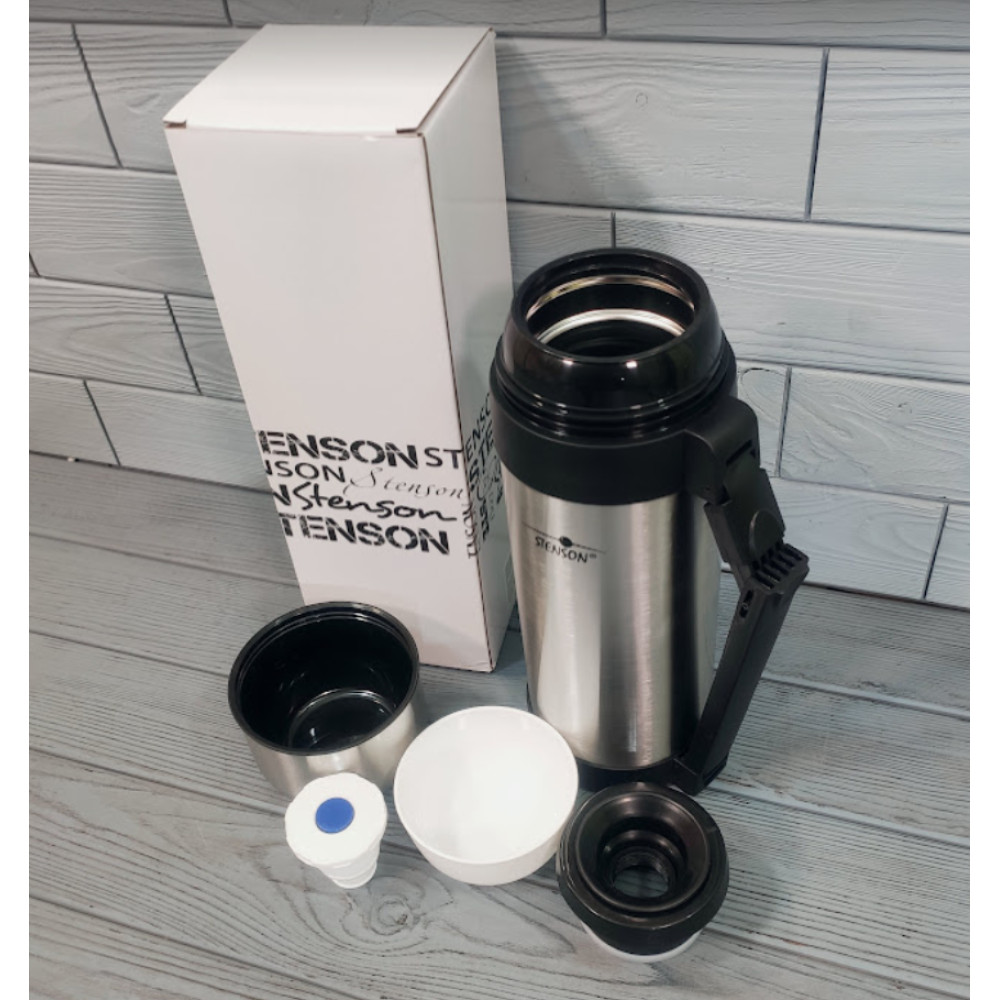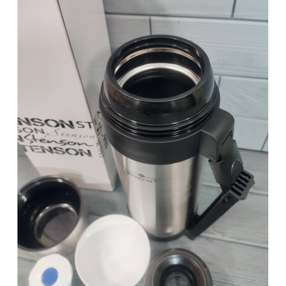 - Термос має зручну рухому пластикову ручку та нейлоновий ремінець для зберігання для перенесення.