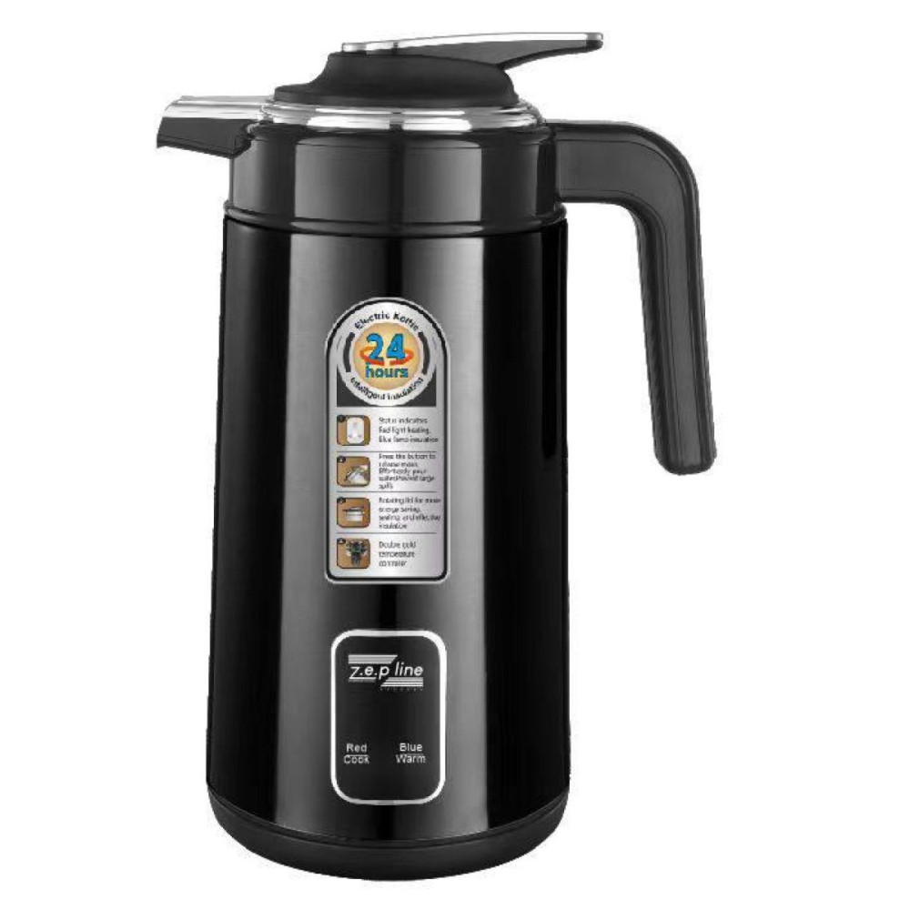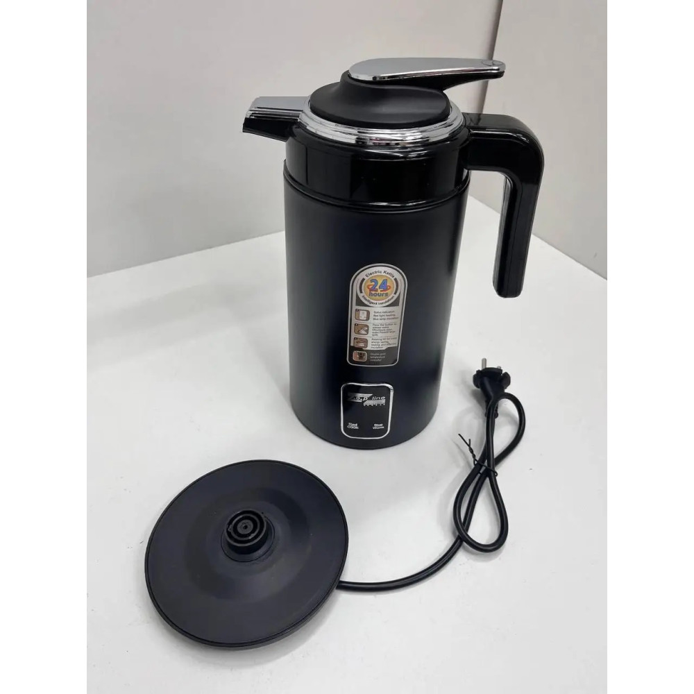 Цей термос здатний швидко нагрівати воду та зберігати її температуру протягом тривалого часу. Він оснащений закритим нагрівальним елементом і відрізняється від звичайних електричних чайників міцнішим теплоізольованим корпусом. Термос кип'ятить воду та підтримує її температуру на потрібному рівні, запобігаючи повторному кип'ятінню, що дозволяє зберегти всі корисні властивості води.