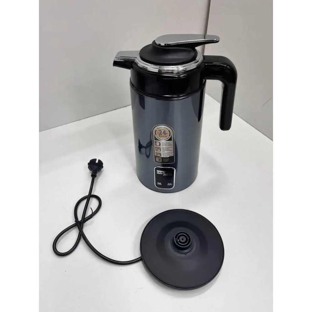 Цей термос здатний швидко нагрівати воду та зберігати її температуру протягом тривалого часу. Він оснащений закритим нагрівальним елементом і відрізняється від звичайних електричних чайників міцнішим теплоізольованим корпусом. Термос кип'ятить воду та підтримує її температуру на потрібному рівні, запобігаючи повторному кип'ятінню, що дозволяє зберегти всі корисні властивості води.