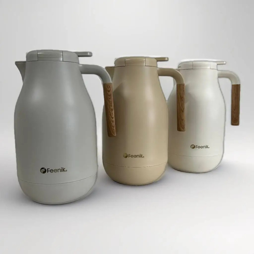 Термос-глечик Feenik зі скляною колбою поєднує в собі ефективну термоізоляцію, довговічність, зручність використання й універсальність, роблячи його чудовим вибором для комфортного зберігання та подавання напоїв.