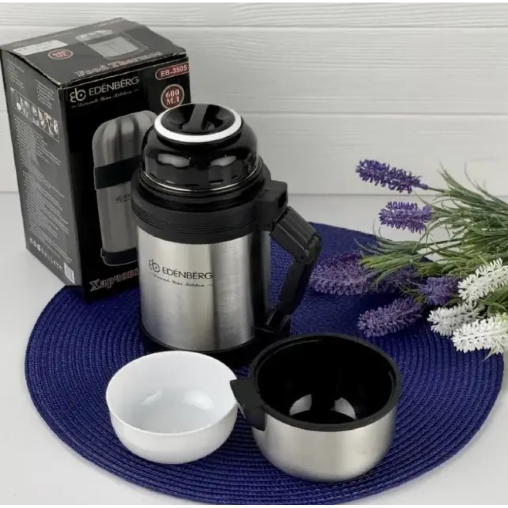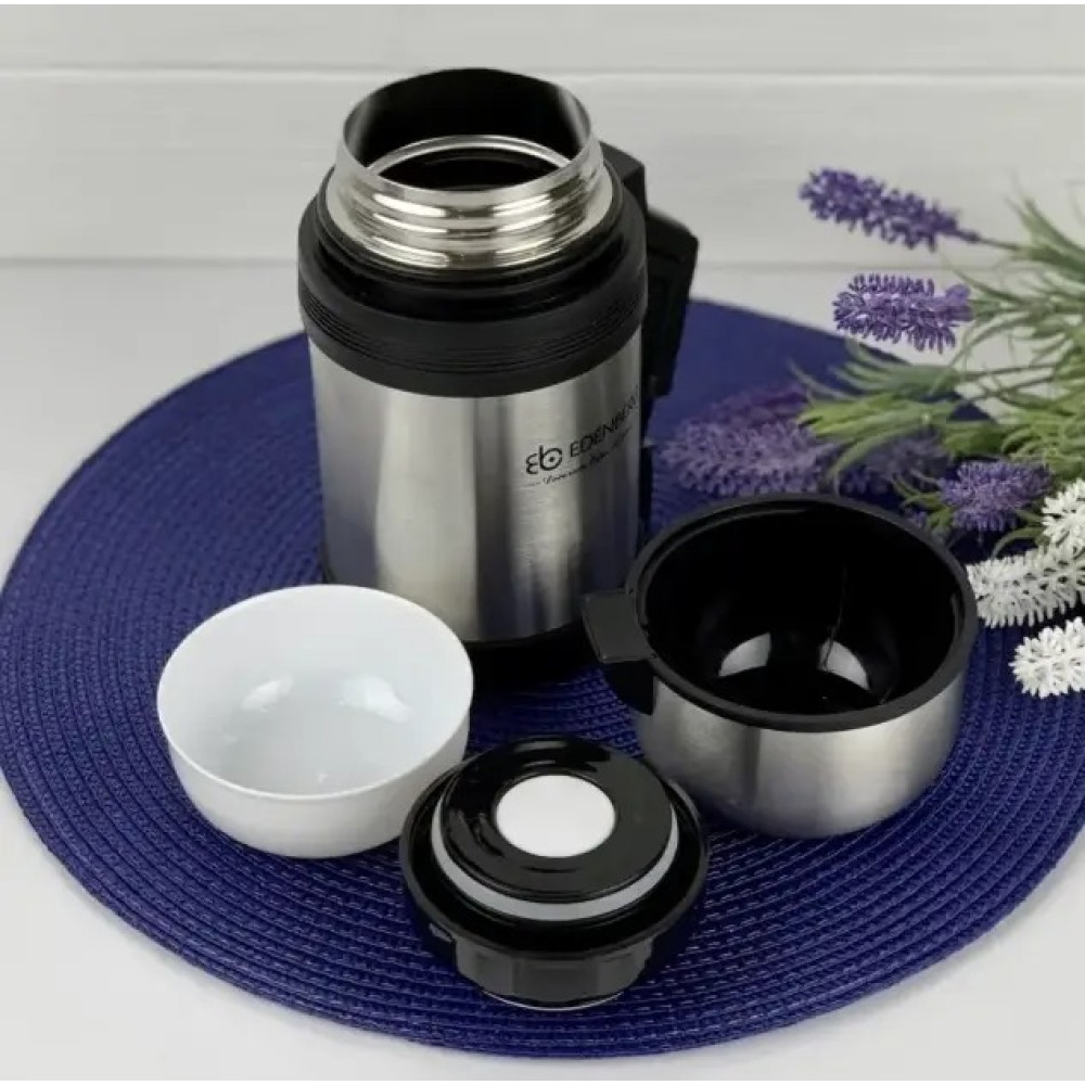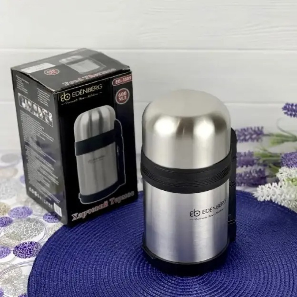 У ньому кожен зможе зберігати, наприклад, рідкі продукти, супи або другі страви. Термос Edenberg довго зберігатиме потрібну температуру всередині – все завдяки якісним подвійним стінкам. Він має невеликі та компактні розміри, тому у Вас не виникне проблем із його транспортуванням. Термос виготовлений із екологічно чистої нержавіючої сталі, яка не виділяє шкідливих речовин та не впливає на смак рідини.